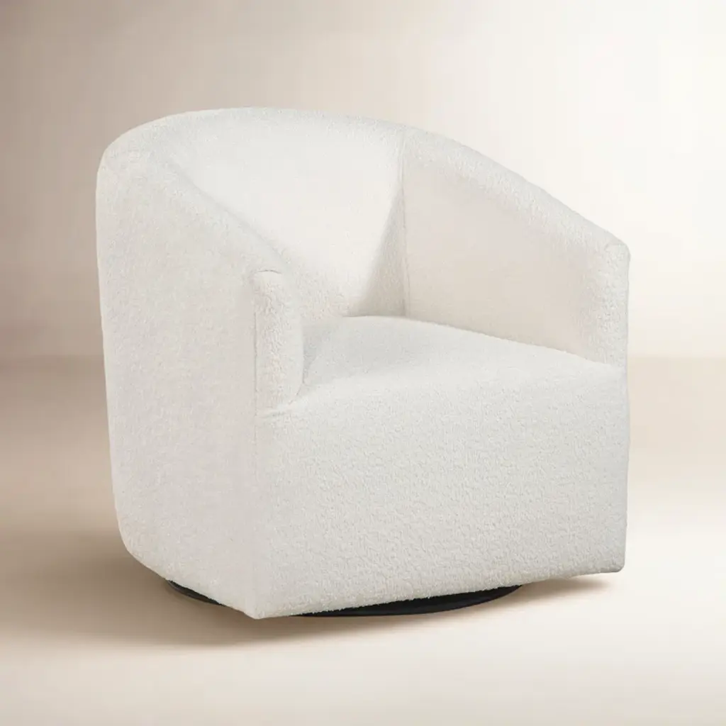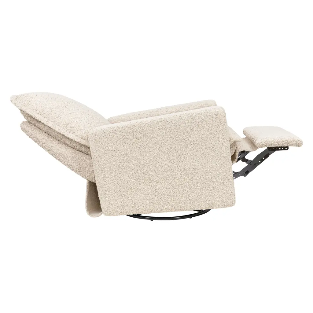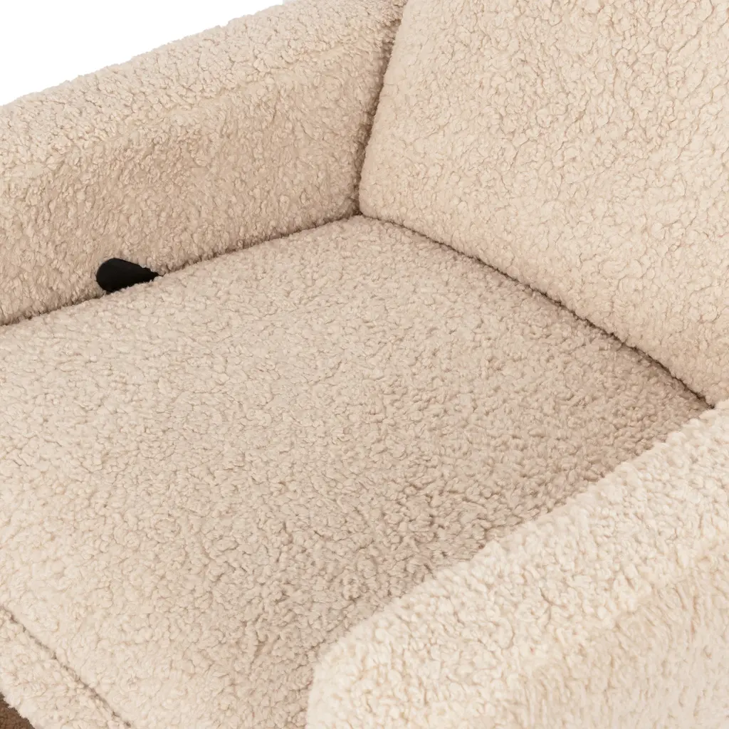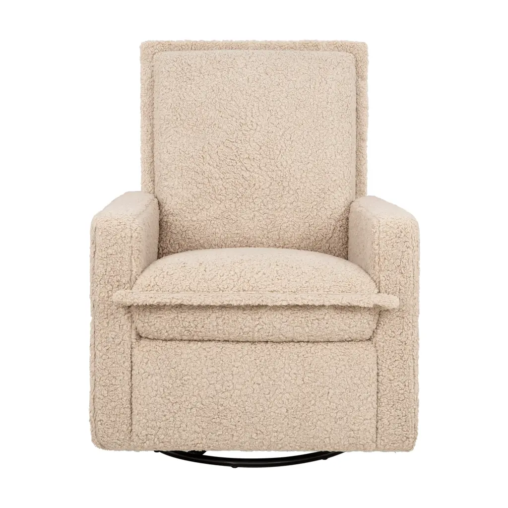 Thoughtfully designed for every feed, snuggle, and storytime, the Cali Flange Recliner and Swivel Glider from Babyletto is the ultimate nursery companion. This cozy chair gently glides, swivels 360 degrees, and features a hidden reclining mechanism for ultimate comfort. Upholstered by hand in a texture-rich shearling fabric with a plush pillowback for head and neck support, it's GREENGUARD GOLD Certified to support cleaner indoor air. A fusion of thoughtful design and safety, it’s the perfect spot to relax with your little one. Highlights: