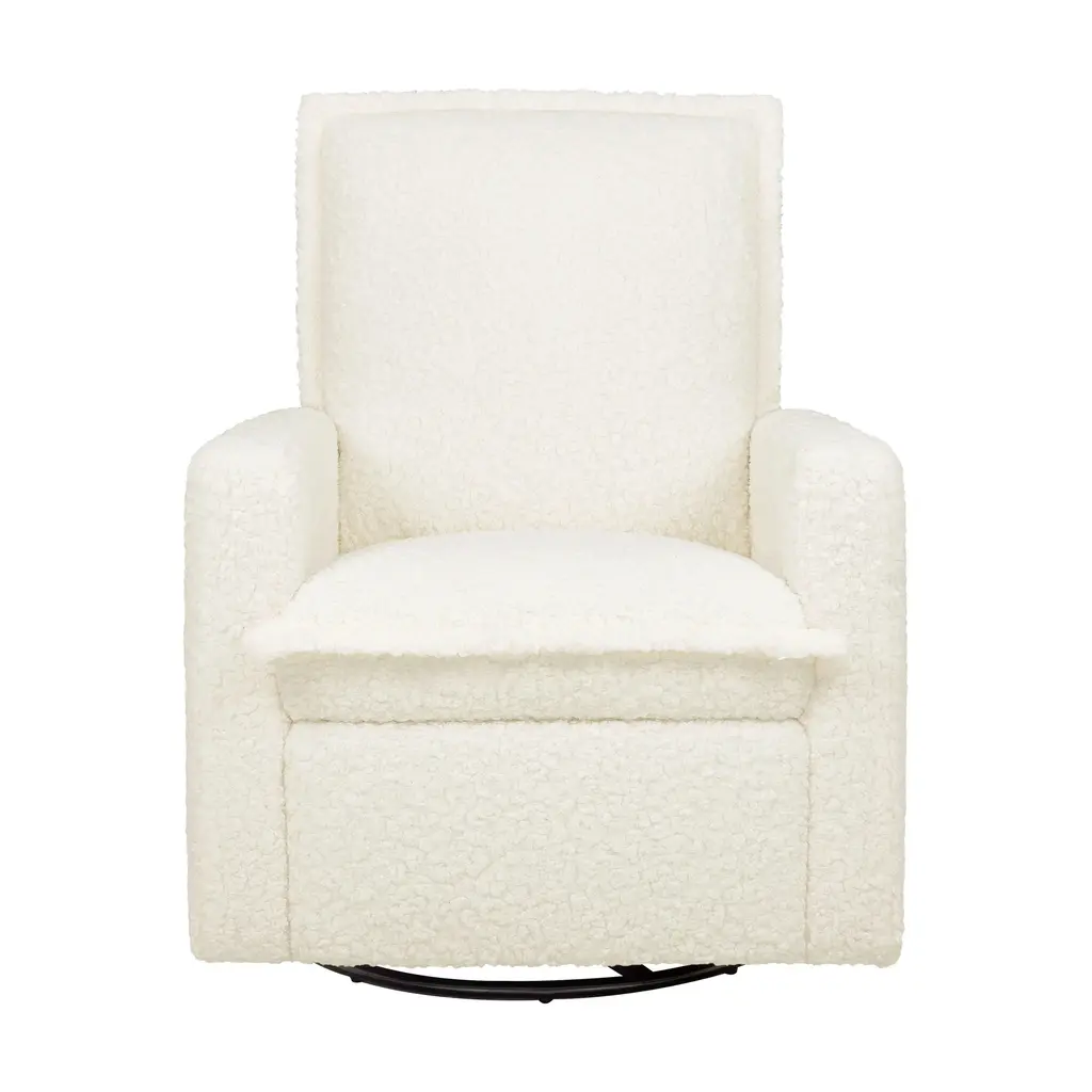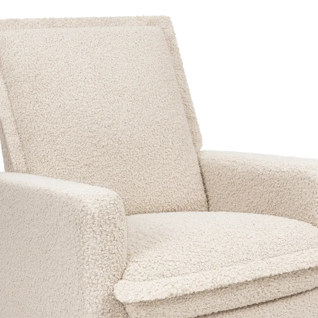 Thoughtfully designed for every feed, snuggle, and storytime, the Cali Flange Recliner and Swivel Glider from Babyletto is the ultimate nursery companion. This cozy chair gently glides, swivels 360 degrees, and features a hidden reclining mechanism for ultimate comfort. Upholstered by hand in a texture-rich shearling fabric with a plush pillowback for head and neck support, it's GREENGUARD GOLD Certified to support cleaner indoor air. A fusion of thoughtful design and safety, it’s the perfect spot to relax with your little one. Highlights: