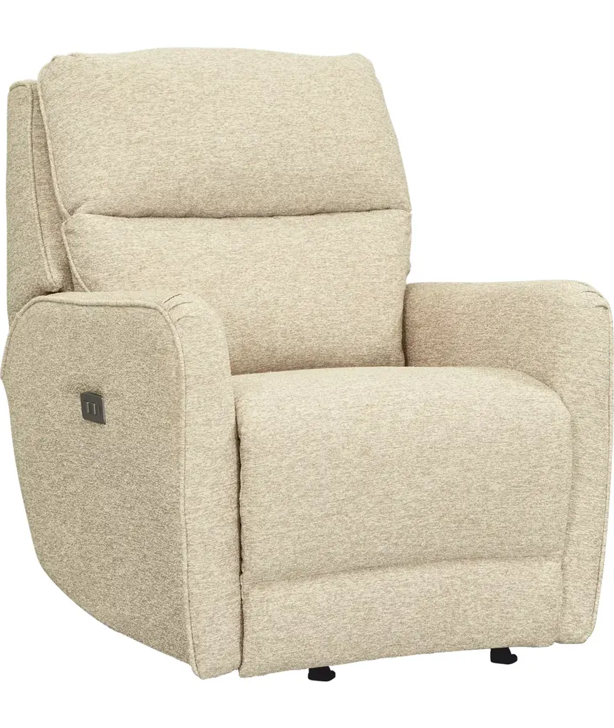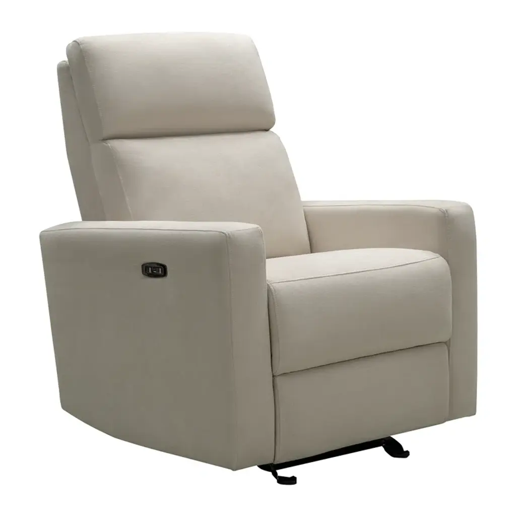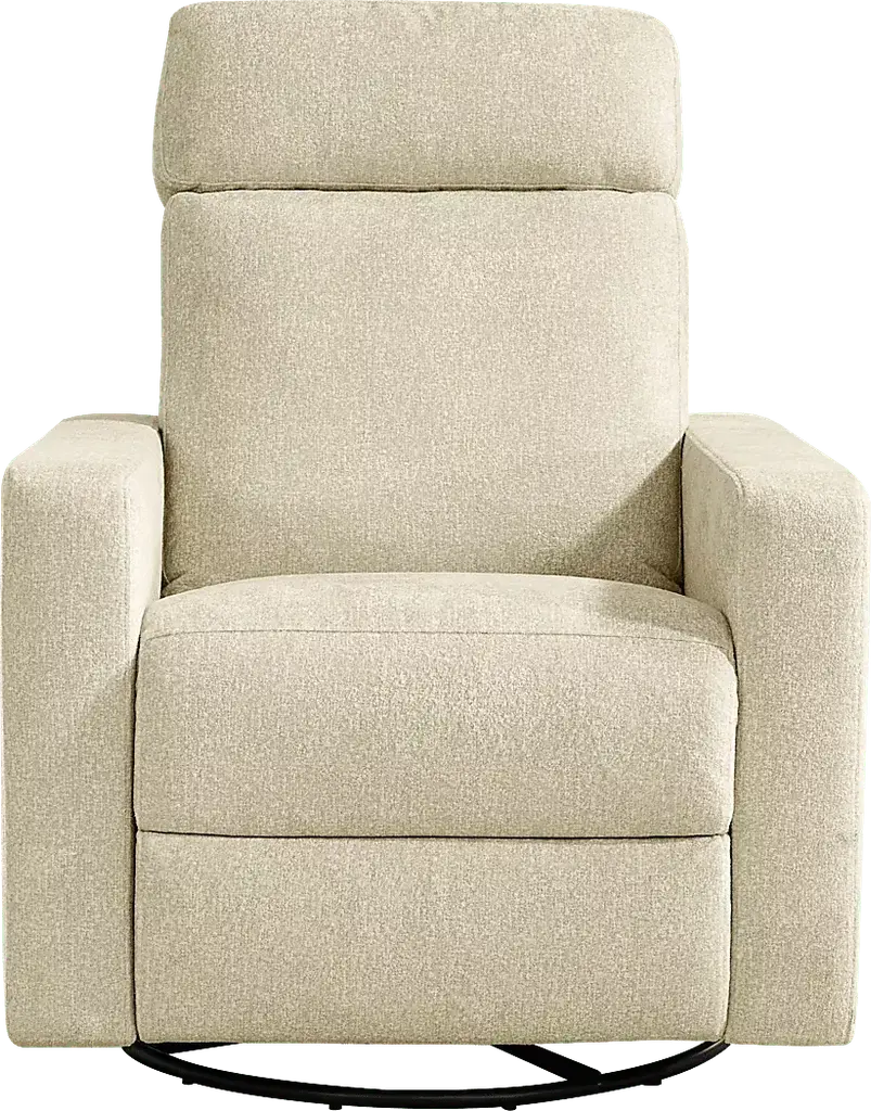 As soothing as the gentle glow of late-night city lights, the Clifton recliner transforms daily downtime into a tranquil escape with elevated style and modern technology. Upholstered in a sandy beige knitted fabric, this transitional piece features sophisticated track arms and a subtly tufted back, delivering a sleek yet simple silhouette. Exquisite motion amenities enhance your relaxation with three different versatile features. Dual power reclining includes an adjustable headrest and footrest, controlled by a side panel with convenient USB charging ports. A swivel base offers 360-degree mobility for seamless repositioning, while the glider function provides gentle back-and-forth motion for moments of calm. Beneath the recliner, a built-in night light casts a soft, ambient glow with three adjustable brightness levels, making it easy to set the mood as you unwind into the evening. Upholstery: 100% Polyester.