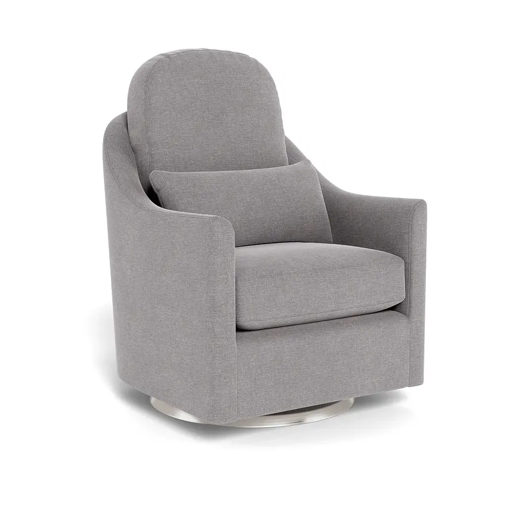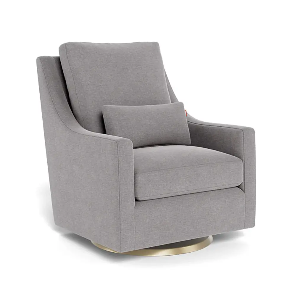 Streamlined, comfortable and well-tailored for everyday use, the Como Glider - Swivel Base from Monte offers a classic glider design without all the bulk. Masterfully crafted by hand in Canada, this glider offers a metallic base and durable fabric options to match your interior design scheme while providing you with a high-quality design built to last. Enjoy the soothing glide motion to rock your little one to sleep, and endless mobility thanks to the chic swivel base. Highlights