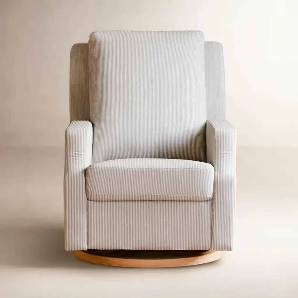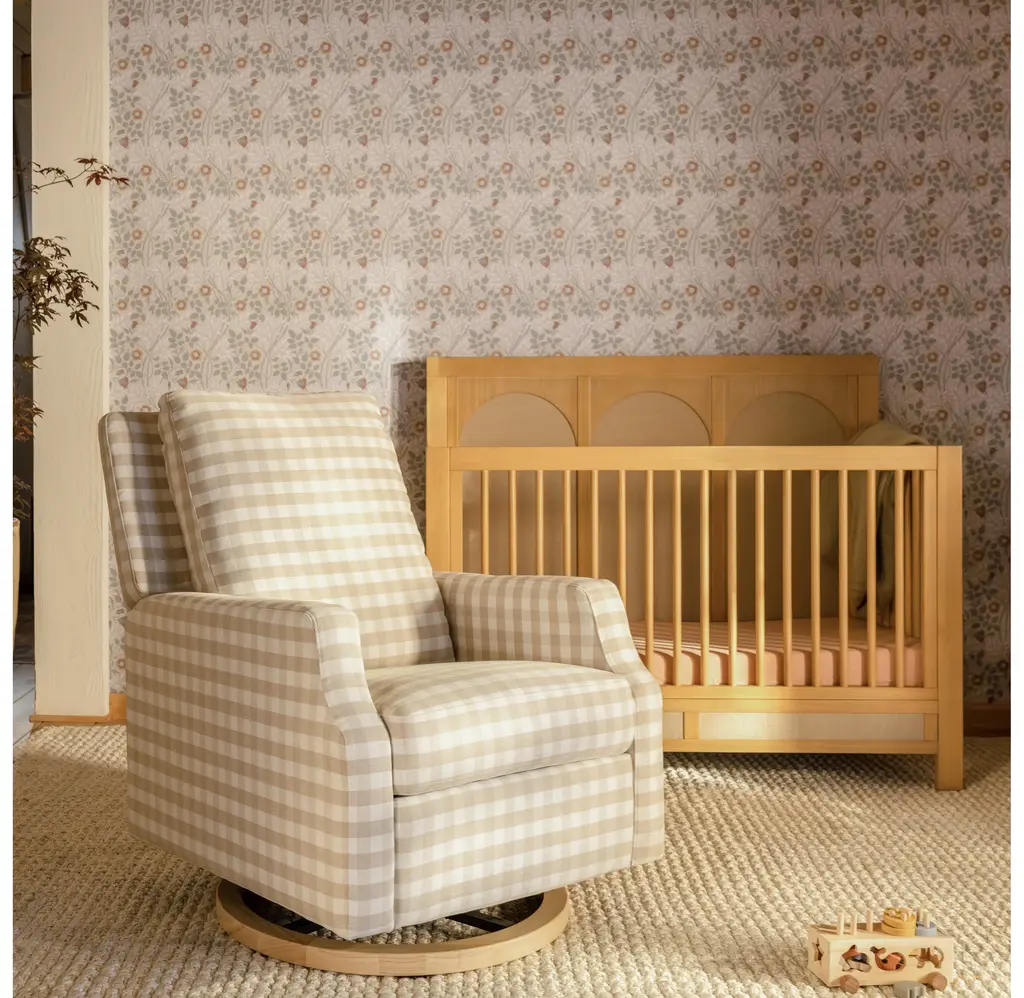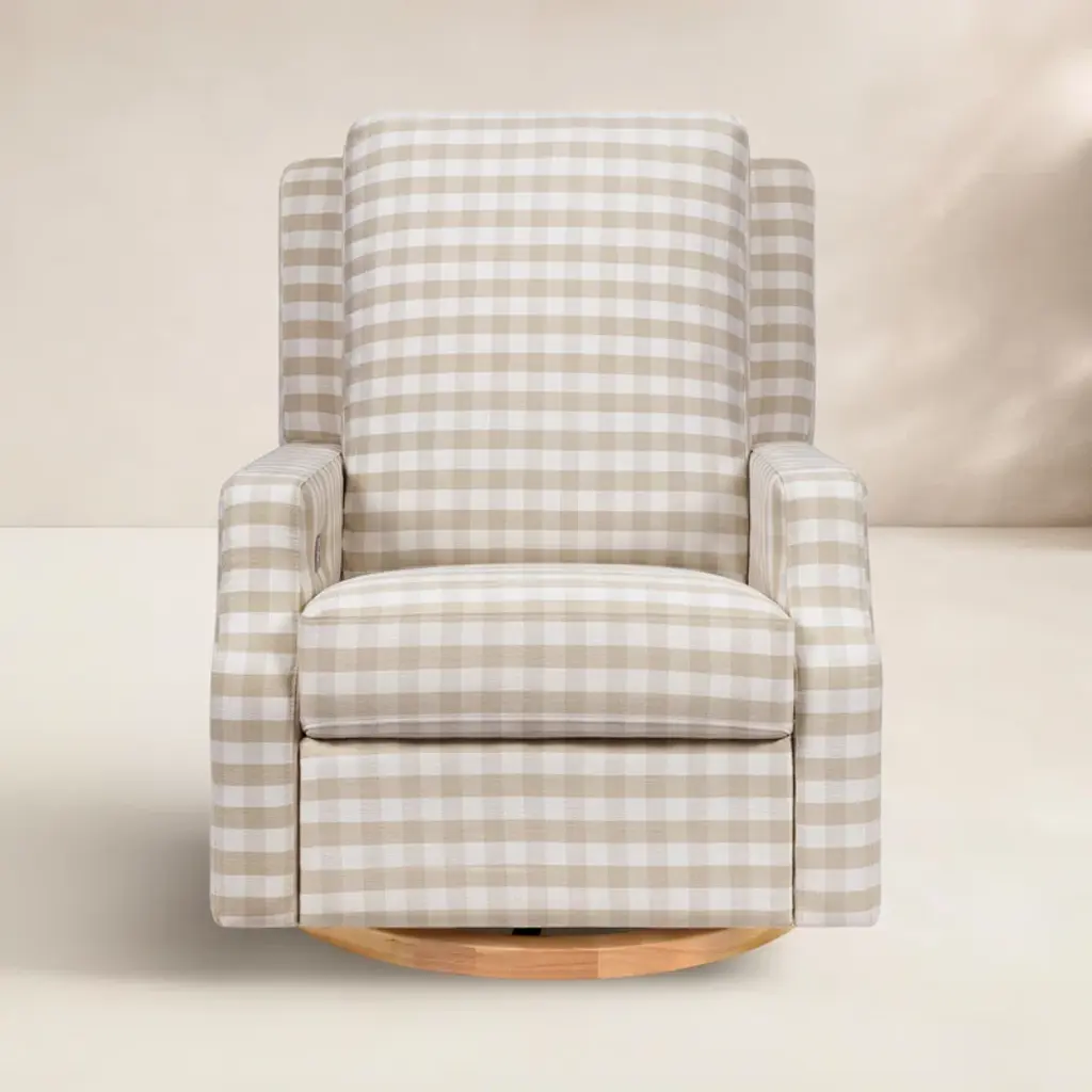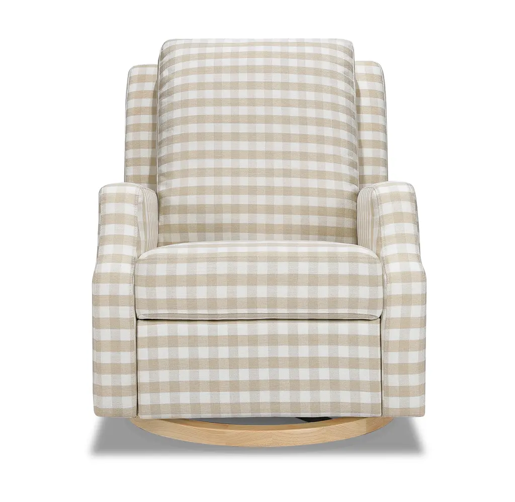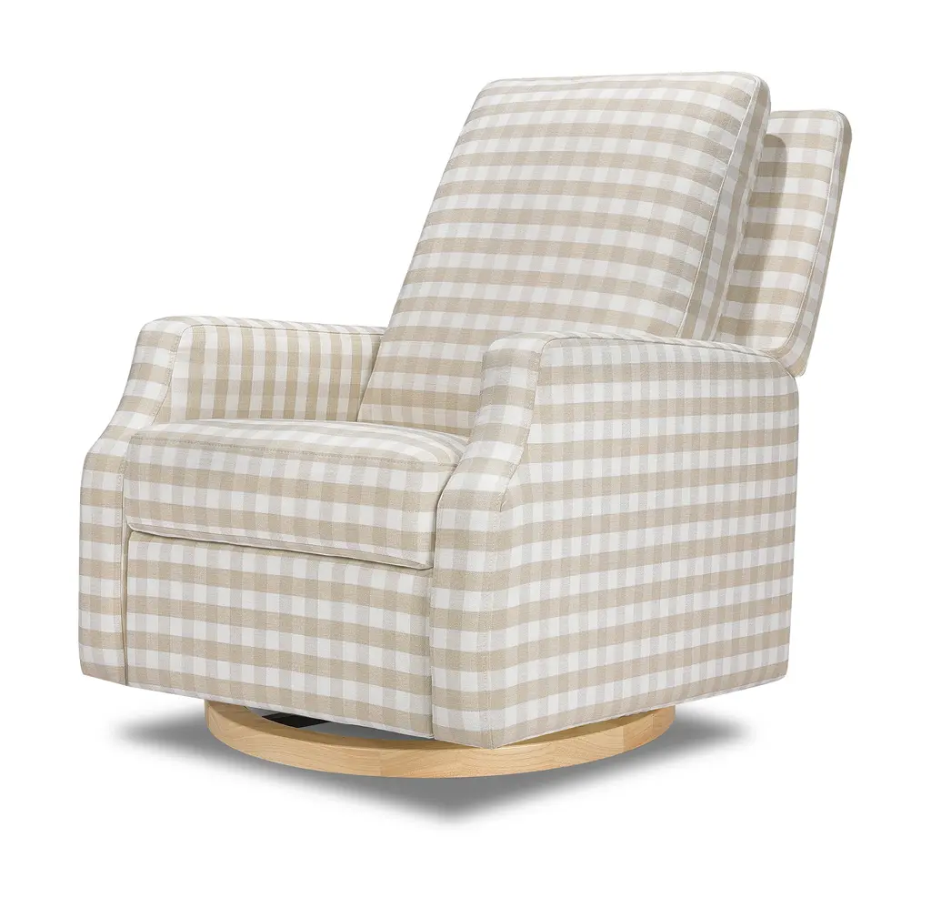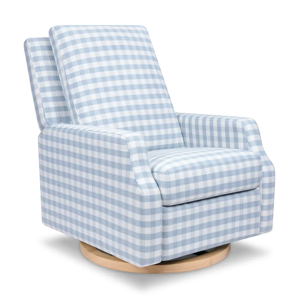 The Crewe Recliner blends form and function with its crisp, contemporary design and comfortable seat. Its smooth, back-and-forth gliding motion helps you rock your baby to sleep with ease, while the plush back cushion, hidden recline mechanism, and convenient swivel create an inviting repose for both you and your baby.The Crewe Recliner blends form and function with its crisp, contemporary design and comfortable seat. Its smooth, back-and-forth gliding motion helps you rock your baby to sleep with ease, while the plush back cushion, hidden recline mechanism, and convenient swivel create an inviting repose for both you and your baby.FEATURES:GREENGUARD GOLD CERTIFIED: This product has been tested for over 10,000 chemical emissions and VOCs, undergoing rigorous scientific testing to meet some of the world's most stringent chemical emissions requirements. It contributes to cleaner indoor air to ensure the health and safety of your family and home.EASY RECLINE and EFFORTLESS GLIDE: Cuddle up, recline, and get cozy. Our hidden reclining mechanism maintains a clean design while offering traditional comfort. Whether you are feeding baby or rocking baby to sleep, our metal base allows for a smooth and gentle 360 degree swivel motion as well as forward and backward gliding.COMFORTABLE and DURABLE: This recliner features plush arm rests and a soft back for extra comfort.BREATHE EASY: Foam used in the seat meets all CA TB117-2013 flammability requirements and is CertiPUR-US certified, certifying the foam is made without PBDE or Tris flame retardants, heavy metals, formaldehyde, CFCs and phthalates regulated by the CPSC.FSC CERTIFIED WOOD: Wood used in the frame of this product comes from well-managed, FSC-certified forests. The FSC label means that wood has been harvested to benefit communities, wildlife, and the environment.TIMELESS STYLE: Our highly sought-after Crewe Glider designed in a classic gingham fabric. A nursery statement piece created with traditional details and timeless style in mind.EASY SET UP: Just a few simple steps - no tools required.
