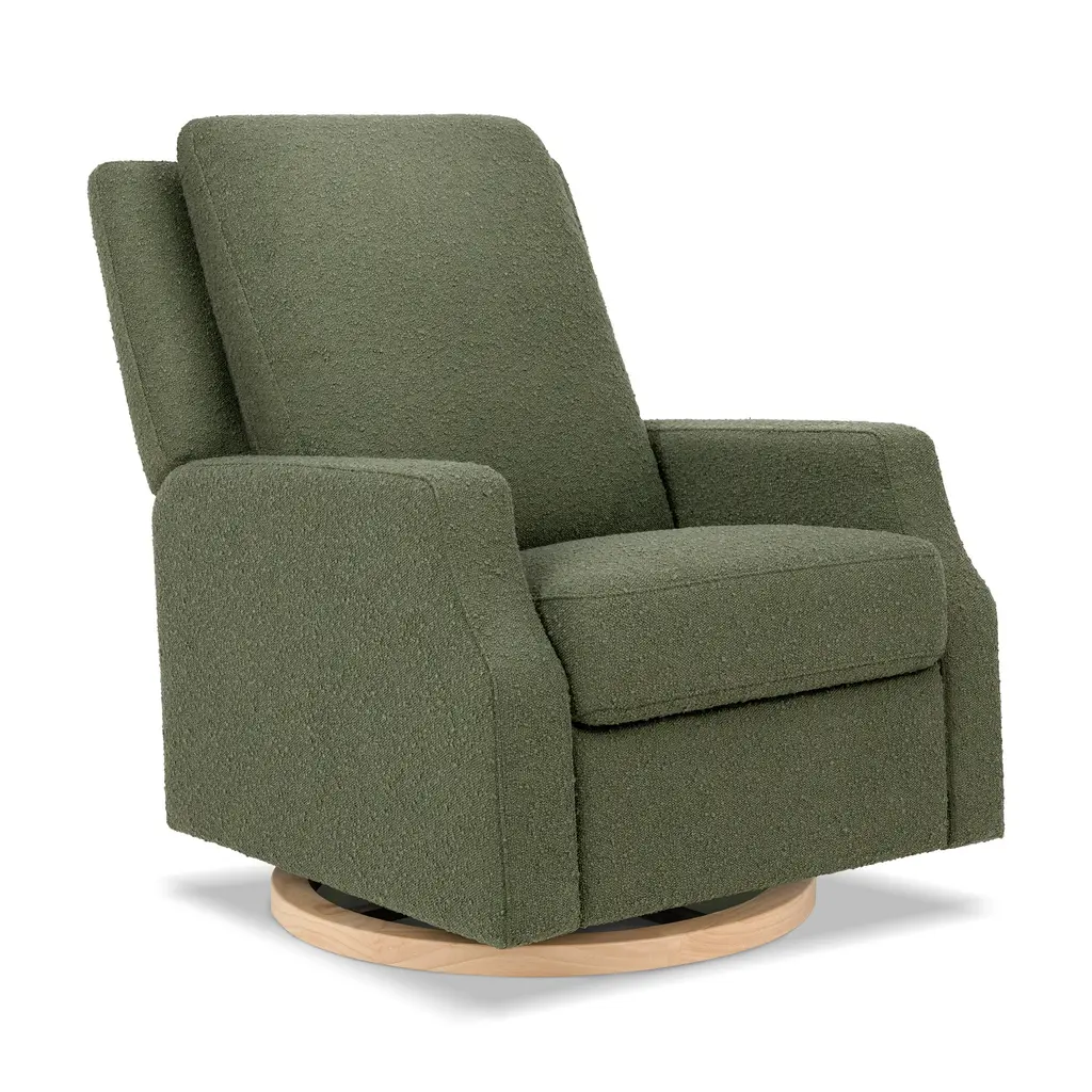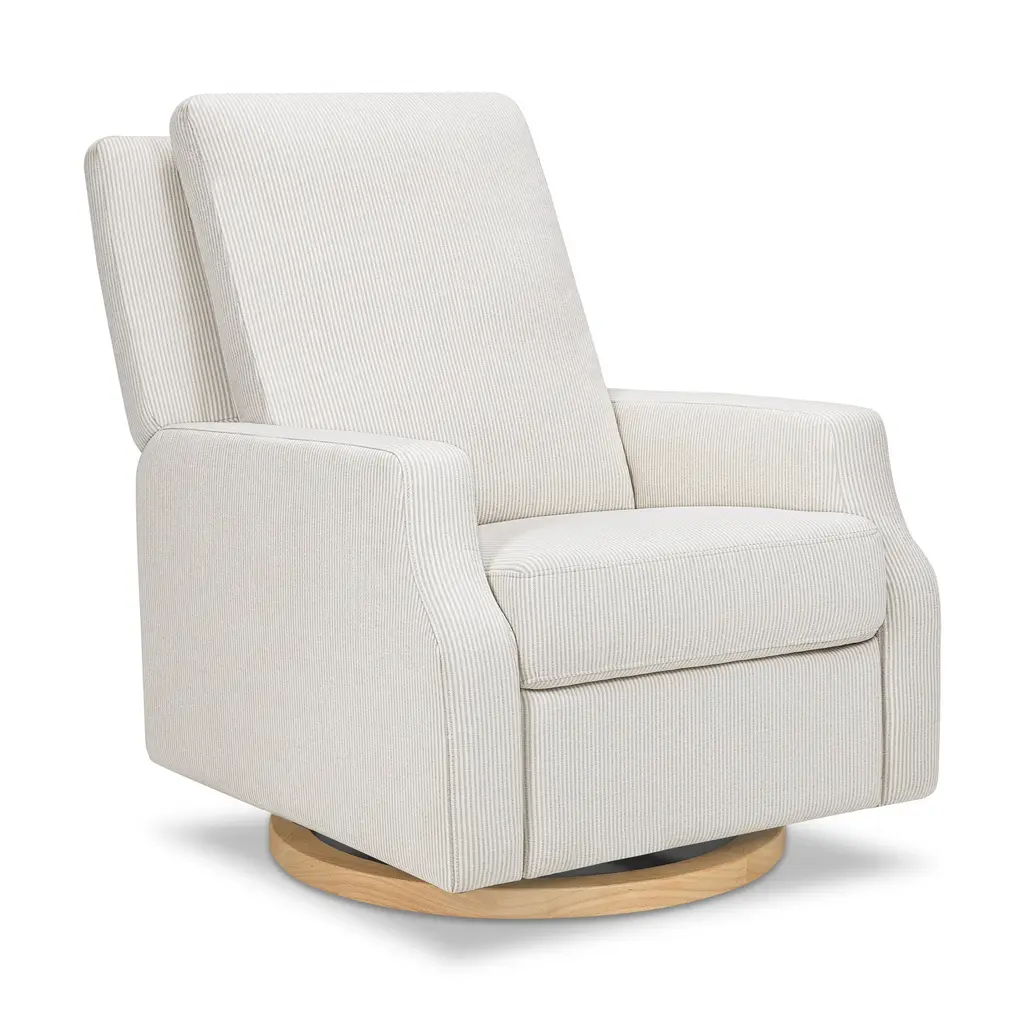 Indulge in luxurious comfort with the Crewe Recliner and Swivel Glider from Namesake. Its sleek design and smooth gliding motion make it perfect for soothing your baby to sleep. The hidden recline mechanism and convenient swivel add to the inviting repose, making it an essential addition to your nursery. Highlights