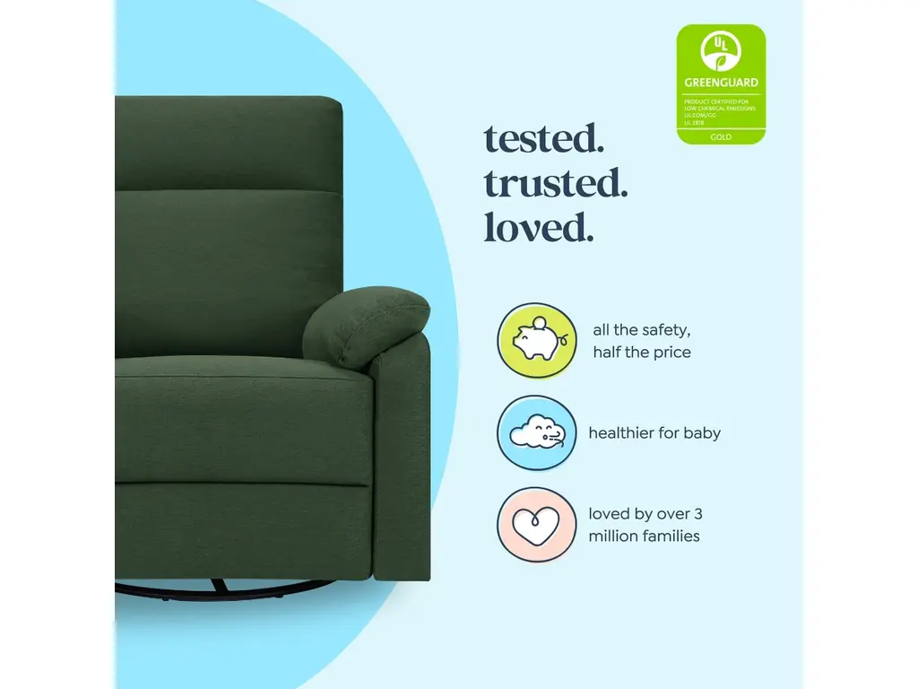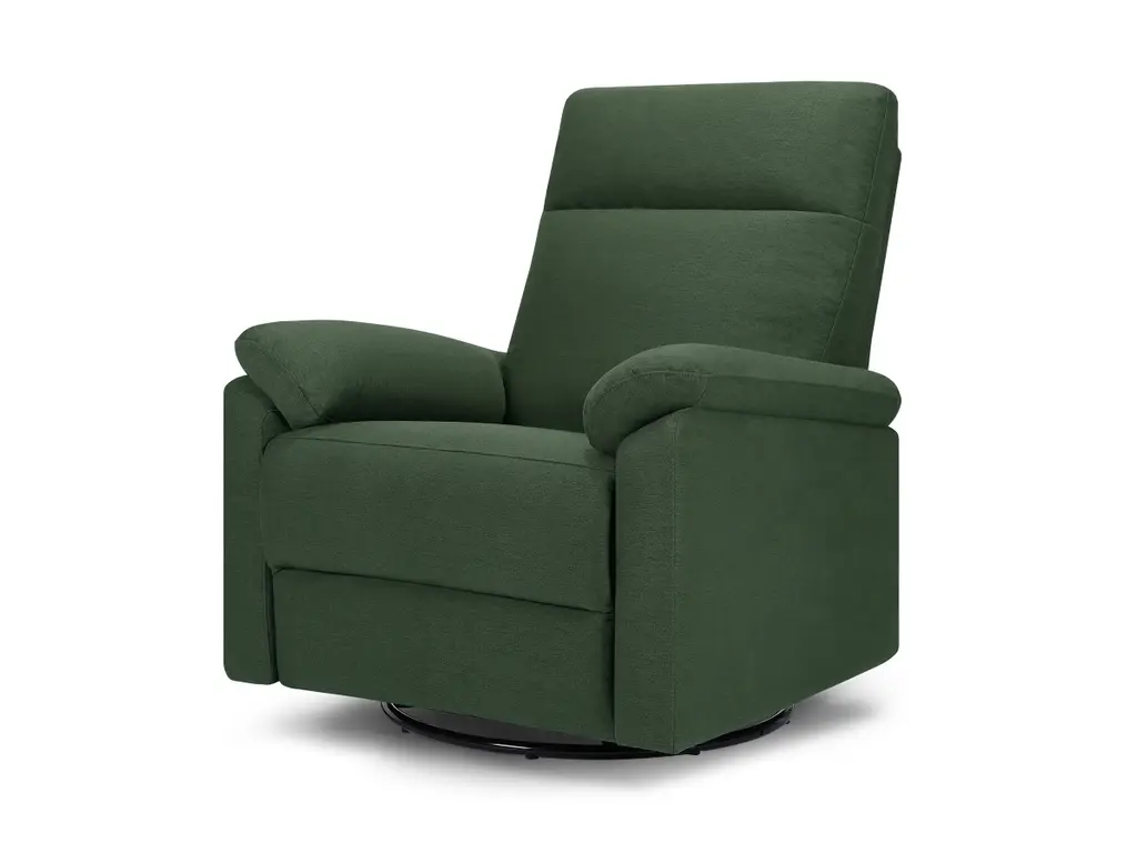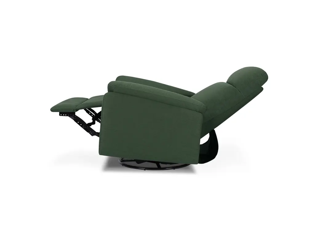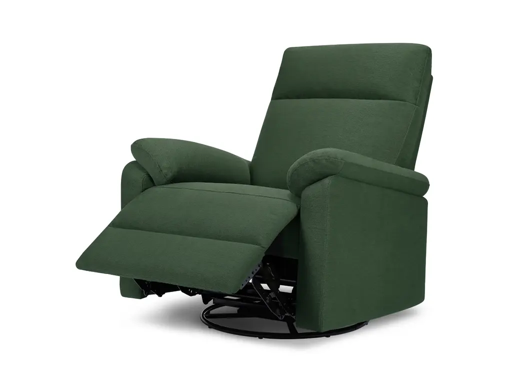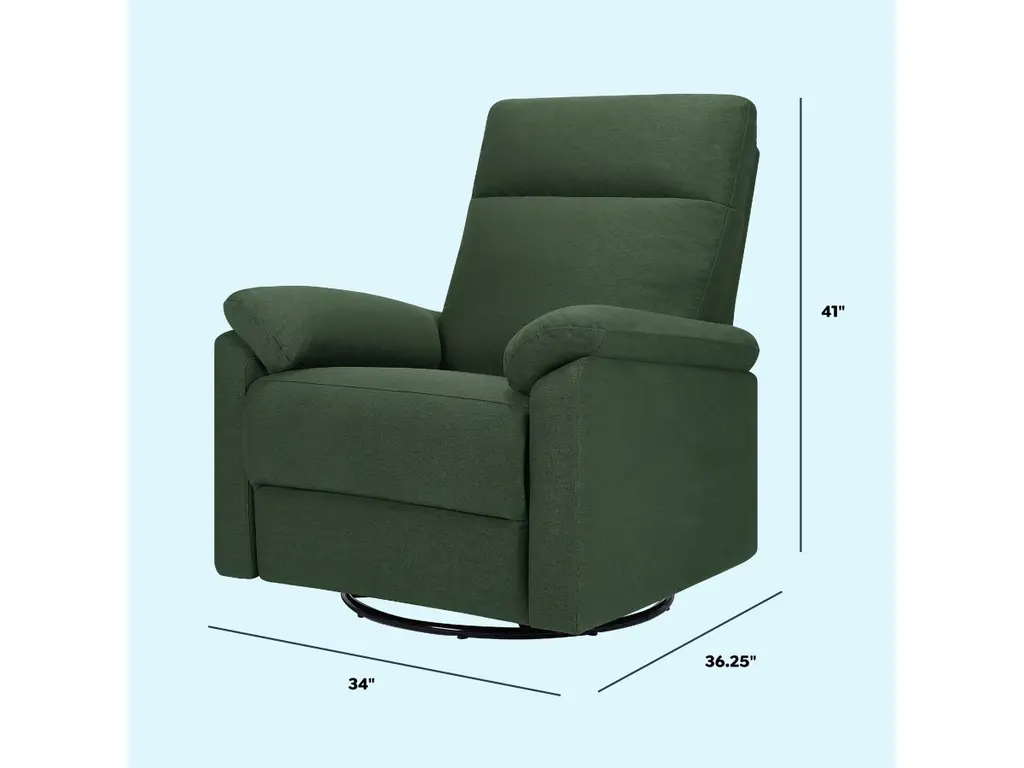 The Suzy Electronic Recliner and Swivel Glider has been thoughtfully crafted with cushioned armrests to provide optimal support and comfort to meet parent's and baby's feeding time needs. Moms and dads can rest easy in this comfortable, durable chair that swivels and has an automatic recline button that ensures a seamless transition from sitting to a peaceful reclined resting position. Designed with a high pillowback for head and neck support and a USB port for convenience, you'll find yourself wanting to drift off into a peaceful slumber. This modern and versatile design can easily transition to your home in the later years.