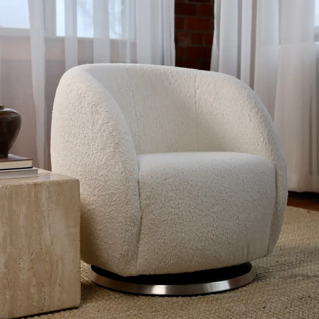 Monte's new rounded Gem swivel glider is so fun and gorgeous that every space could use one, maybe even two. Glide, swivel and relax in this soothing and delightful compact Gem. Monte's original Gem Ottoman is the perfect match for your Gem Swivel Glider. With curved sides, rounded top and a stationary base, Gem Ottoman invites you to put your feet up and relax or use it as a unique seat when not used as a footrest. Features