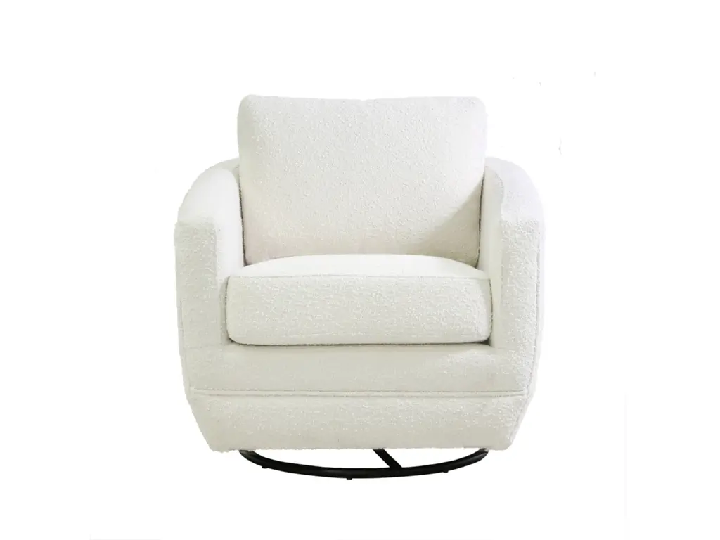 Featuring on-trend colors and a unique mid-century design, the Gogh Swivel Glider brings together the elevated style of modern barrel accent chairs and the comfortable utility of traditional swivel gliders. This nursery chair is upholstered in quality soft-touch fabric and filled with plush cushioning for maximum comfort.