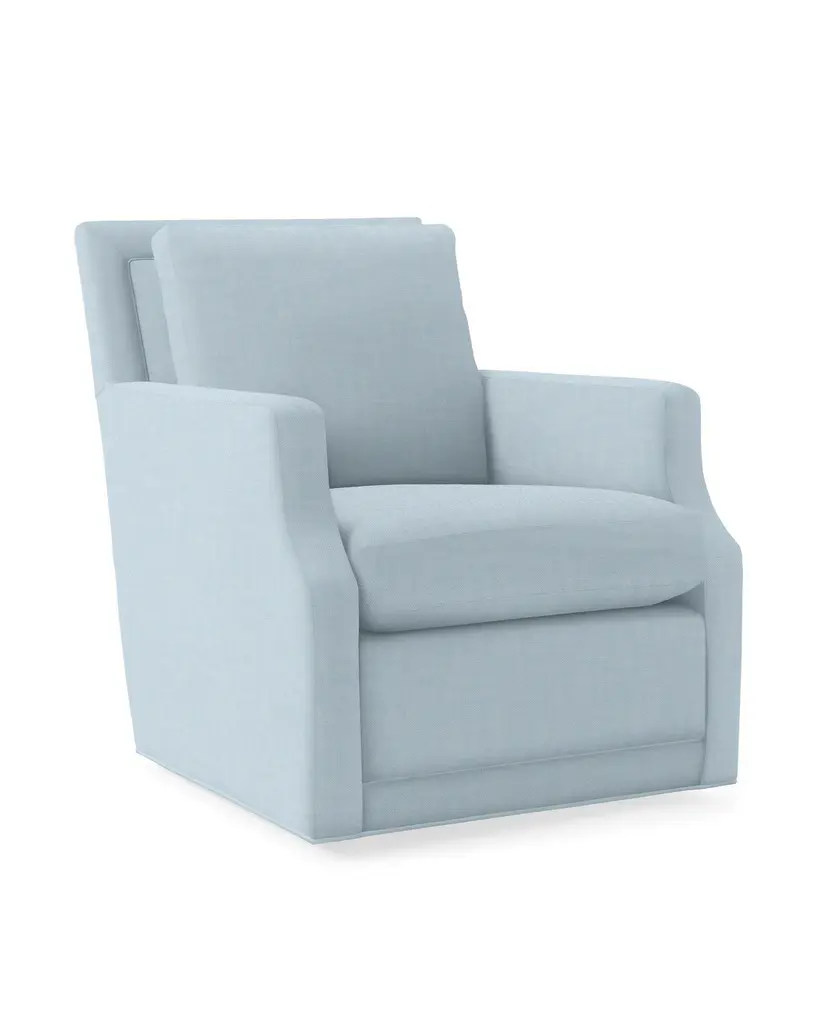 Social graces. A classic silhouette. Upright seat. Lovely notched arms. Delicate piping on back cushions.