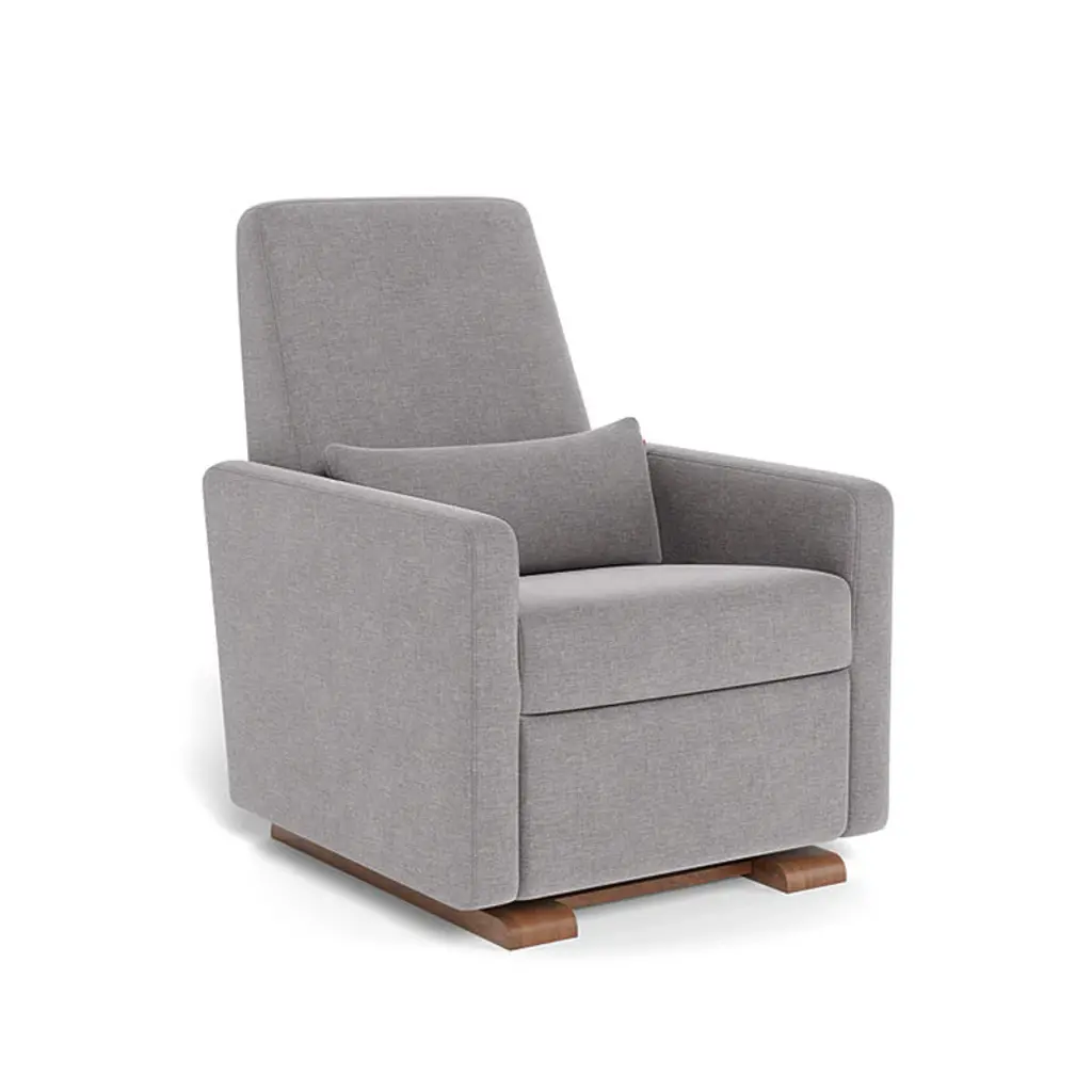 Monte's Motorized Grano Glider Recliner is a stream-lined, comfortable and well-designed chair -- just like Monte's Original Grano -- only this cordless motorized version includes automatic reclining buttons. Enjoy the soothing glide, then when you are ready to recline - hold the button and your feet will be raised on the foot rest, followed by your back reclined effortlessly. Features