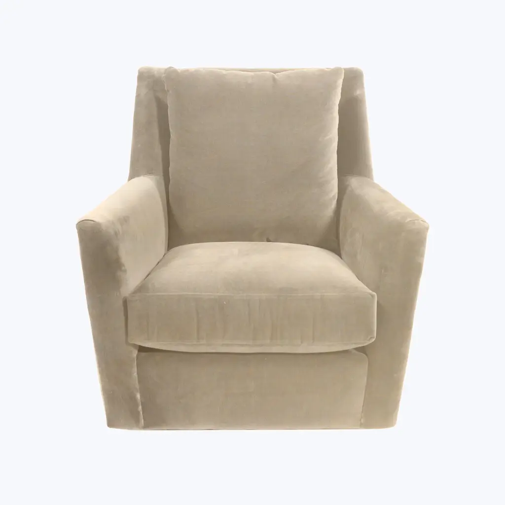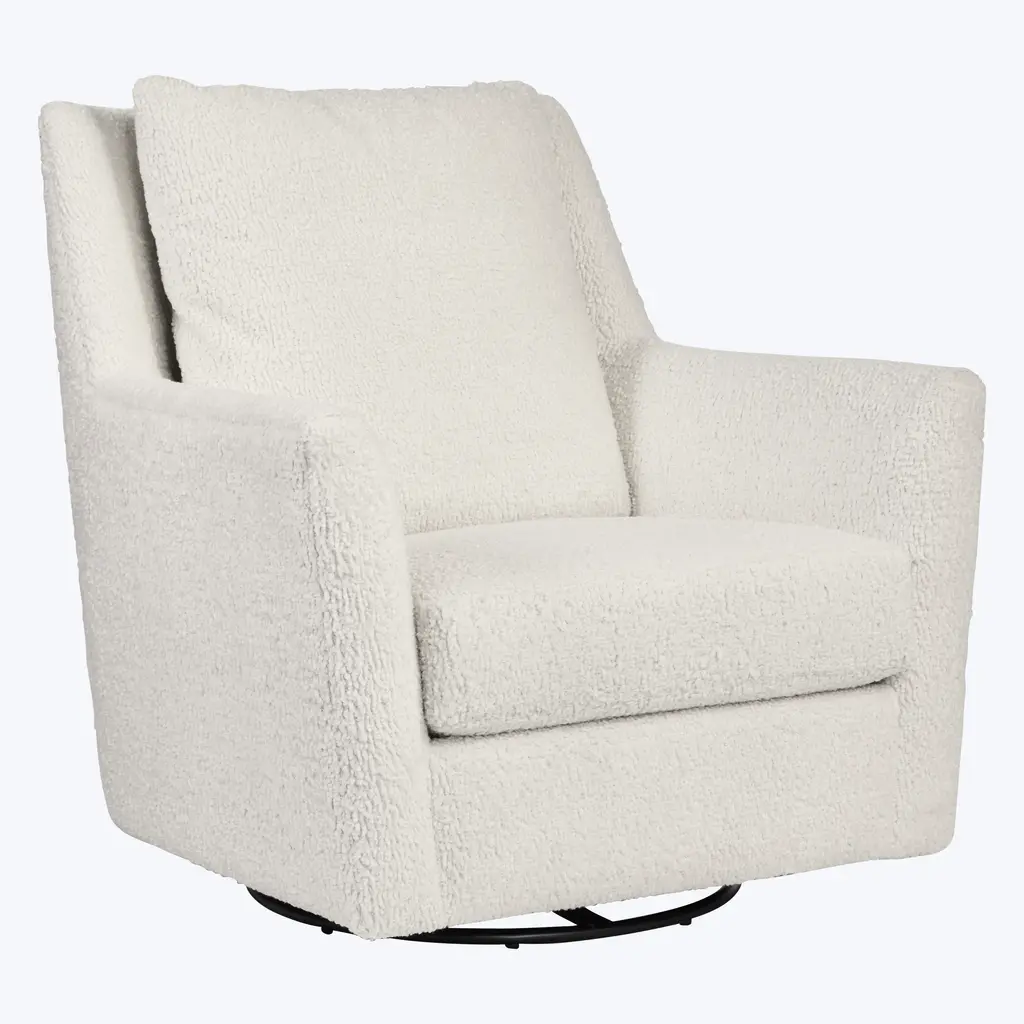 Combining contemporary elegance with everyday comfort, the Haven Swivel Glider by Bond Street Collection is a cozy addition to any setting. Upholstered in a beautiful opal hue, the Haven Swivel Glider is outfitted with plush eco-friendly and hypoallergenic cushions. Handcrafted in the USA. With its gentle motion and deep, plush seating, this is the chair you’ll sink into—and never want to leave.