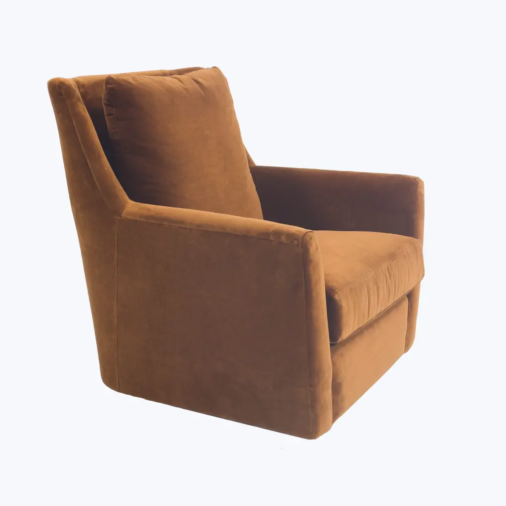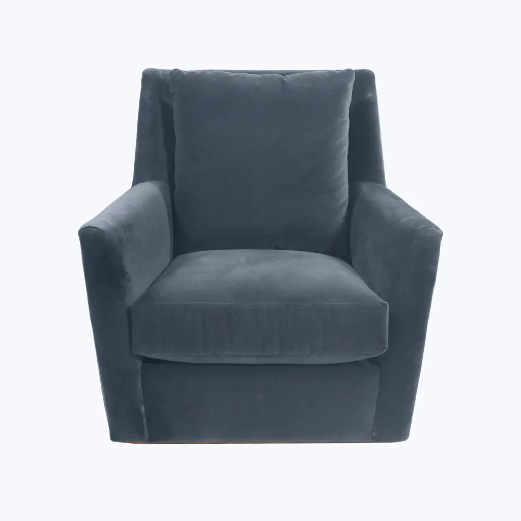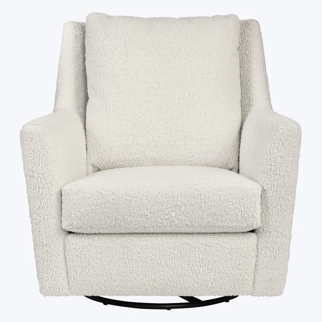 Combining contemporary elegance with everyday comfort, the Haven Swivel Glider by Bond Street Collection is a cozy addition to any setting. Upholstered in a beautiful opal hue, the Haven Swivel Glider is outfitted with plush eco-friendly and hypoallergenic cushions. Handcrafted in the USA. With its gentle motion and deep, plush seating, this is the chair you’ll sink into—and never want to leave.