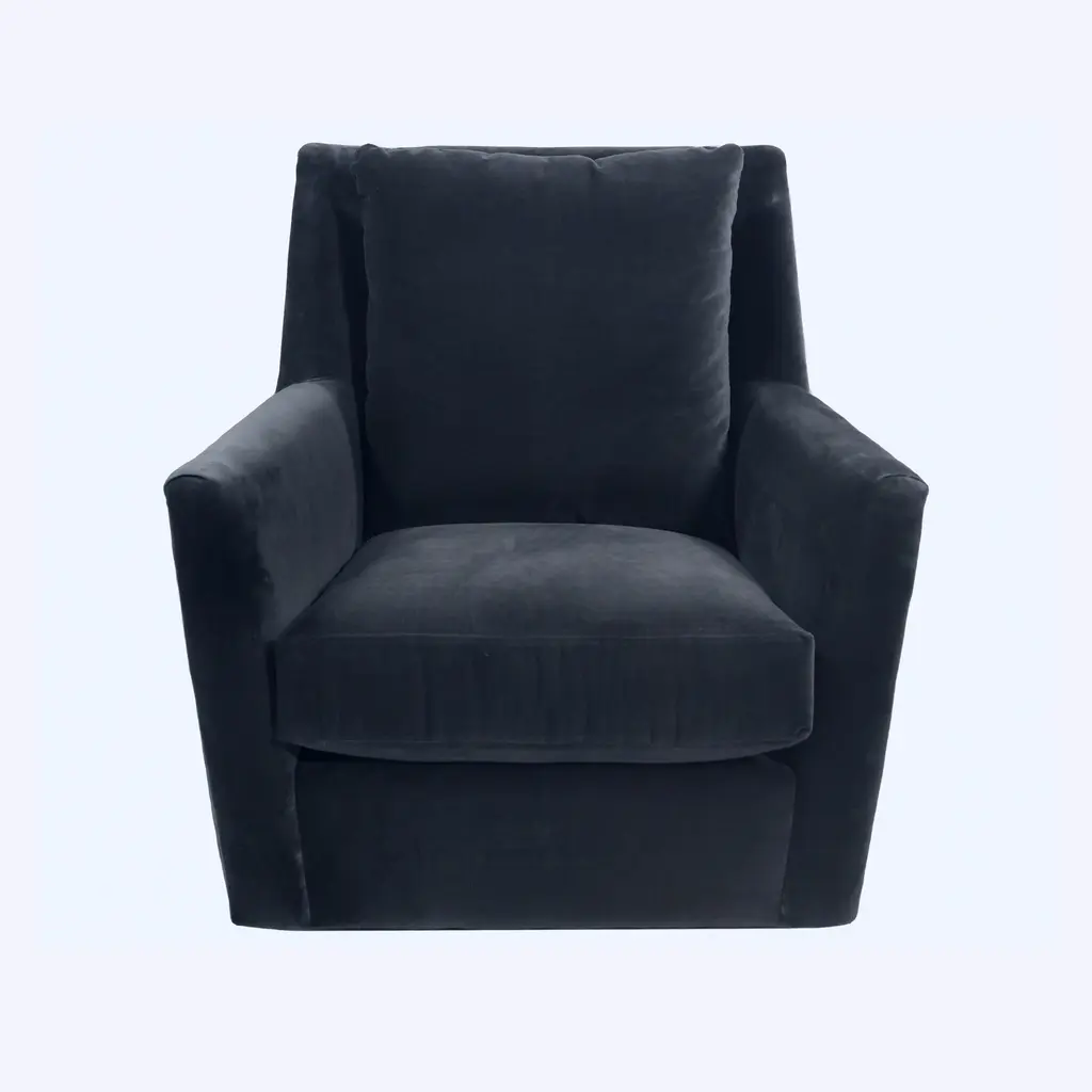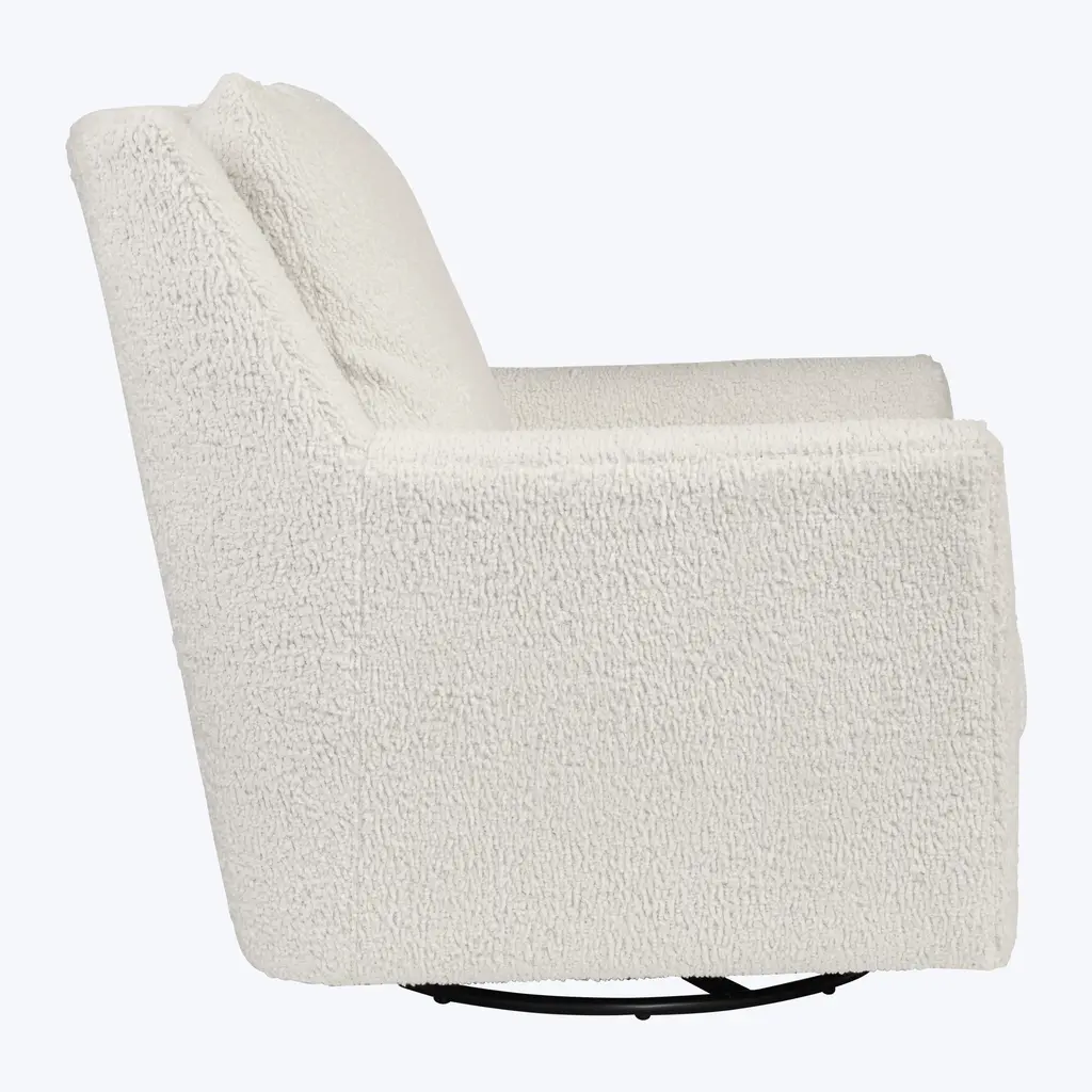 Combining contemporary elegance with everyday comfort, the Haven Swivel Glider by Bond Street Collection is a cozy addition to any setting. Upholstered in a beautiful opal hue, the Haven Swivel Glider is outfitted with plush eco-friendly and hypoallergenic cushions. Handcrafted in the USA. With its gentle motion and deep, plush seating, this is the chair you’ll sink into—and never want to leave.