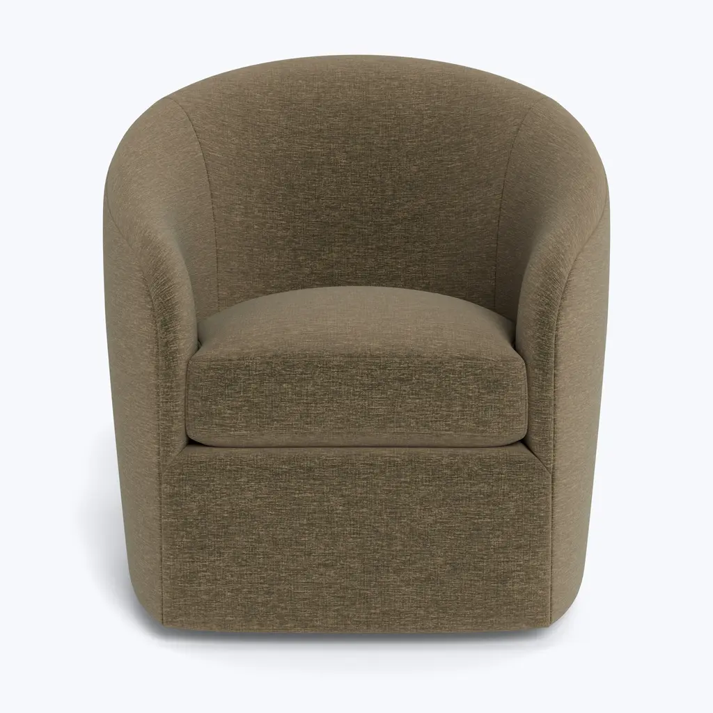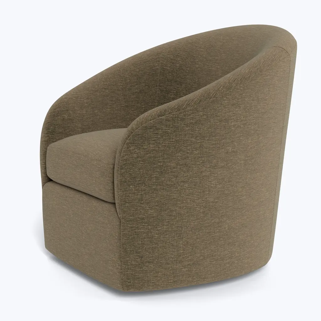 Step into timeless comfort with the Hudson Swivel Glider, an exclusive offering from ABC Carpet & Home. This chair combines classic design with soothing motion, featuring both a smooth swivel and gentle gliding action that make it the perfect spot for relaxing, reading, or even rocking a little one to sleep. With its graceful curved back and versatile swivel glider base, the Hudson Swivel Glider effortlessly transitions from one use to another, providing unparalleled ease and comfort.Designed to suit smaller living rooms, nurseries, or compact professional spaces, the Hudson Swivel Glider offers a sleek silhouette without sacrificing comfort. The chair’s compact design allows it to fit seamlessly into any space, while still providing ample room to lounge and unwind.What sets the Hudson Swivel Glider apart is its plush, blend-down seat cushion, filled with a luxurious mix of dense foam and feather-down, carefully washed to meet hypoallergenic standards. This unique blend offers the perfect balance of softness and support, cradling you in comfort whether you’re enjoying a quiet moment alone or comforting a loved one. The chair’s curved back adds both visual charm and ergonomic support, enhancing its appeal as the ultimate relaxation chair.Crafted with a sustainably sourced Goodwood frame, the Hudson Swivel Glider embodies eco-conscious design and long-lasting quality. Its sturdy construction ensures it remains a staple in your home for years to come, while offering peace of mind knowing it's made with the environment in mind. The combination of sustainable materials and superior craftsmanship delivers a chair that’s as responsible as it is luxurious.Customizing your Hudson Swivel Glider is simple, with over 80 fabric options available. Choose from rich velvets, soft linens, durable blends, and more to create a chair that perfectly matches your personal style and the aesthetic of your home. Whether you're designing a cozy reading nook, adding a chic accent to your nursery, or enhancing your living room, the variety of fabrics ensures a perfect fit for any space.Handcrafted to order and delivered within 8-10 weeks, the Hudson Swivel Glider promises both luxury and comfort. Its timeless design, paired with the functional gliding and swiveling features, makes it a must-have for those seeking both style and relaxation in one chair. Whether you're rocking, lounging, or simply enjoying the moment, the Hudson Swivel Glider offers a blend of sophistication and comfort for every home.