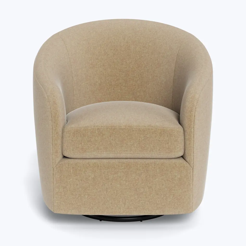 Step into timeless comfort with the Hudson Swivel Glider, an exclusive offering from ABC Carpet & Home. This chair combines classic design with soothing motion, featuring both a smooth swivel and gentle gliding action that make it the perfect spot for relaxing, reading, or even rocking a little one to sleep. With its graceful curved back and versatile swivel glider base, the Hudson Swivel Glider effortlessly transitions from one use to another, providing unparalleled ease and comfort.Designed to suit smaller living rooms, nurseries, or compact professional spaces, the Hudson Swivel Glider offers a sleek silhouette without sacrificing comfort. The chair’s compact design allows it to fit seamlessly into any space, while still providing ample room to lounge and unwind.What sets the Hudson Swivel Glider apart is its plush, blend-down seat cushion, filled with a luxurious mix of dense foam and feather-down, carefully washed to meet hypoallergenic standards. This unique blend offers the perfect balance of softness and support, cradling you in comfort whether you’re enjoying a quiet moment alone or comforting a loved one. The chair’s curved back adds both visual charm and ergonomic support, enhancing its appeal as the ultimate relaxation chair.Crafted with a sustainably sourced Goodwood frame, the Hudson Swivel Glider embodies eco-conscious design and long-lasting quality. Its sturdy construction ensures it remains a staple in your home for years to come, while offering peace of mind knowing it's made with the environment in mind. The combination of sustainable materials and superior craftsmanship delivers a chair that’s as responsible as it is luxurious.Customizing your Hudson Swivel Glider is simple, with over 80 fabric options available. Choose from rich velvets, soft linens, durable blends, and more to create a chair that perfectly matches your personal style and the aesthetic of your home. Whether you're designing a cozy reading nook, adding a chic accent to your nursery, or enhancing your living room, the variety of fabrics ensures a perfect fit for any space.Handcrafted to order and delivered within 8-10 weeks, the Hudson Swivel Glider promises both luxury and comfort. Its timeless design, paired with the functional gliding and swiveling features, makes it a must-have for those seeking both style and relaxation in one chair. Whether you're rocking, lounging, or simply enjoying the moment, the Hudson Swivel Glider offers a blend of sophistication and comfort for every home.