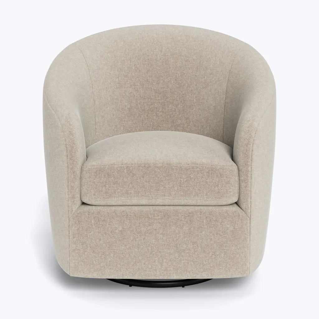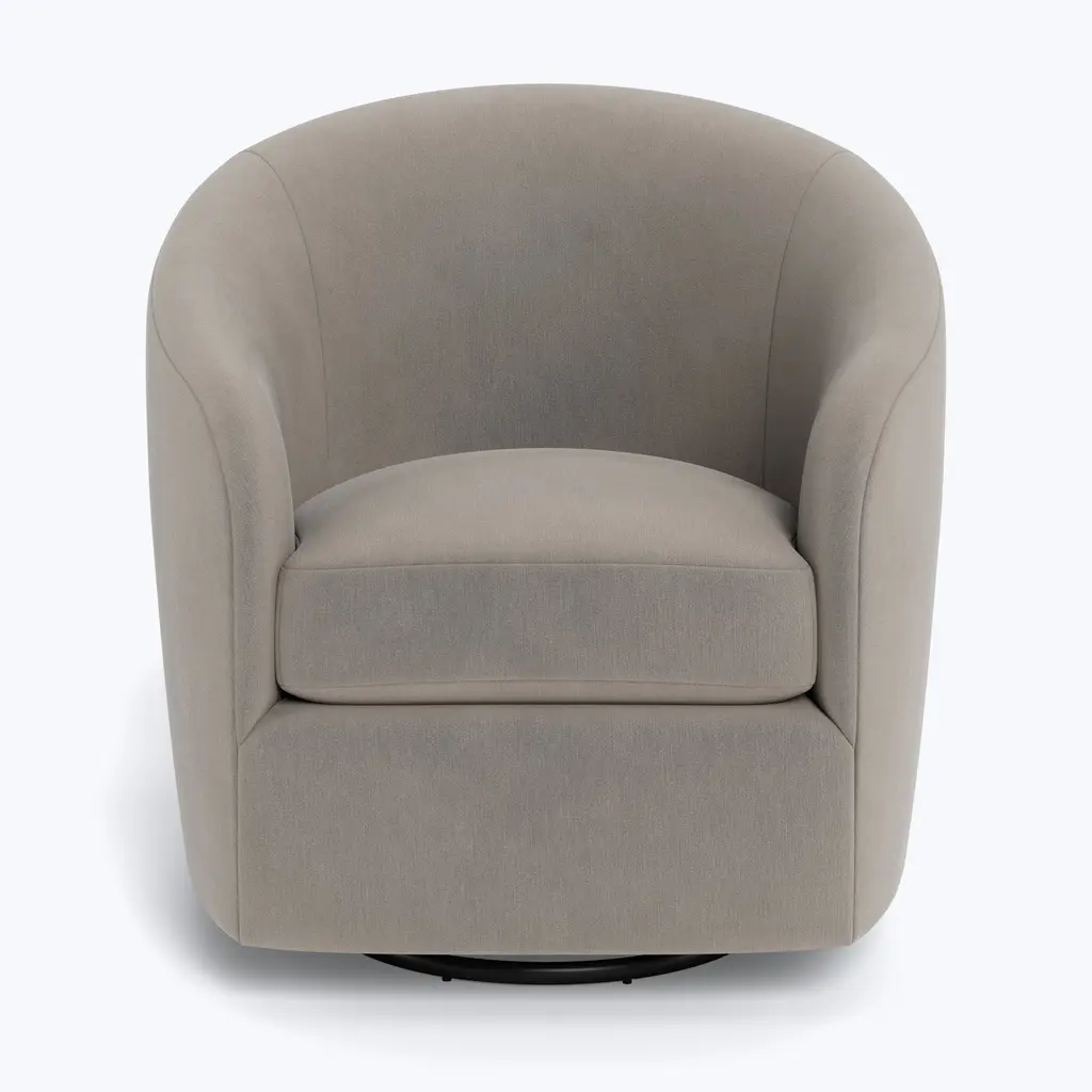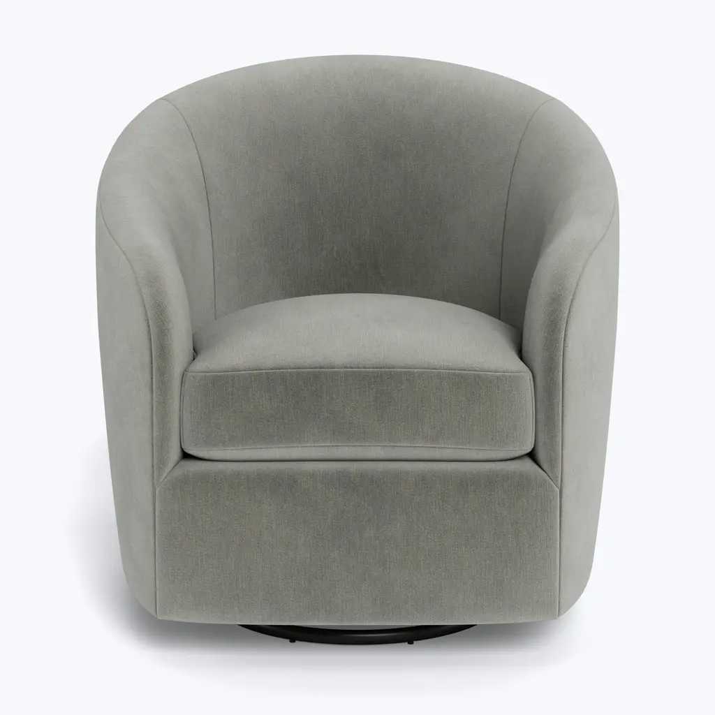 Step into timeless comfort with the Hudson Swivel Glider, an exclusive offering from ABC Carpet & Home. This chair combines classic design with soothing motion, featuring both a smooth swivel and gentle gliding action that make it the perfect spot for relaxing, reading, or even rocking a little one to sleep. With its graceful curved back and versatile swivel glider base, the Hudson Swivel Glider effortlessly transitions from one use to another, providing unparalleled ease and comfort.Designed to suit smaller living rooms, nurseries, or compact professional spaces, the Hudson Swivel Glider offers a sleek silhouette without sacrificing comfort. The chair’s compact design allows it to fit seamlessly into any space, while still providing ample room to lounge and unwind.What sets the Hudson Swivel Glider apart is its plush, blend-down seat cushion, filled with a luxurious mix of dense foam and feather-down, carefully washed to meet hypoallergenic standards. This unique blend offers the perfect balance of softness and support, cradling you in comfort whether you’re enjoying a quiet moment alone or comforting a loved one. The chair’s curved back adds both visual charm and ergonomic support, enhancing its appeal as the ultimate relaxation chair.Crafted with a sustainably sourced Goodwood frame, the Hudson Swivel Glider embodies eco-conscious design and long-lasting quality. Its sturdy construction ensures it remains a staple in your home for years to come, while offering peace of mind knowing it's made with the environment in mind. The combination of sustainable materials and superior craftsmanship delivers a chair that’s as responsible as it is luxurious.Customizing your Hudson Swivel Glider is simple, with over 80 fabric options available. Choose from rich velvets, soft linens, durable blends, and more to create a chair that perfectly matches your personal style and the aesthetic of your home. Whether you're designing a cozy reading nook, adding a chic accent to your nursery, or enhancing your living room, the variety of fabrics ensures a perfect fit for any space.Handcrafted to order and delivered within 8-10 weeks, the Hudson Swivel Glider promises both luxury and comfort. Its timeless design, paired with the functional gliding and swiveling features, makes it a must-have for those seeking both style and relaxation in one chair. Whether you're rocking, lounging, or simply enjoying the moment, the Hudson Swivel Glider offers a blend of sophistication and comfort for every home.