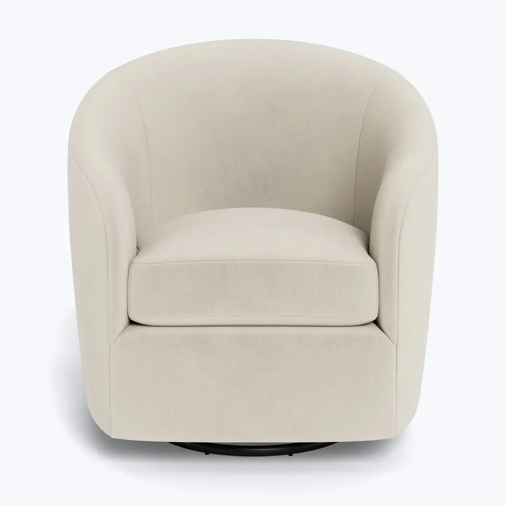 Step into timeless comfort with the Hudson Swivel Glider, an exclusive offering from ABC Carpet & Home. This chair combines classic design with soothing motion, featuring both a smooth swivel and gentle gliding action that make it the perfect spot for relaxing, reading, or even rocking a little one to sleep. With its graceful curved back and versatile swivel glider base, the Hudson Swivel Glider effortlessly transitions from one use to another, providing unparalleled ease and comfort.Designed to suit smaller living rooms, nurseries, or compact professional spaces, the Hudson Swivel Glider offers a sleek silhouette without sacrificing comfort. The chair’s compact design allows it to fit seamlessly into any space, while still providing ample room to lounge and unwind.What sets the Hudson Swivel Glider apart is its plush, blend-down seat cushion, filled with a luxurious mix of dense foam and feather-down, carefully washed to meet hypoallergenic standards. This unique blend offers the perfect balance of softness and support, cradling you in comfort whether you’re enjoying a quiet moment alone or comforting a loved one. The chair’s curved back adds both visual charm and ergonomic support, enhancing its appeal as the ultimate relaxation chair.Crafted with a sustainably sourced Goodwood frame, the Hudson Swivel Glider embodies eco-conscious design and long-lasting quality. Its sturdy construction ensures it remains a staple in your home for years to come, while offering peace of mind knowing it's made with the environment in mind. The combination of sustainable materials and superior craftsmanship delivers a chair that’s as responsible as it is luxurious.Customizing your Hudson Swivel Glider is simple, with over 80 fabric options available. Choose from rich velvets, soft linens, durable blends, and more to create a chair that perfectly matches your personal style and the aesthetic of your home. Whether you're designing a cozy reading nook, adding a chic accent to your nursery, or enhancing your living room, the variety of fabrics ensures a perfect fit for any space.Handcrafted to order and delivered within 8-10 weeks, the Hudson Swivel Glider promises both luxury and comfort. Its timeless design, paired with the functional gliding and swiveling features, makes it a must-have for those seeking both style and relaxation in one chair. Whether you're rocking, lounging, or simply enjoying the moment, the Hudson Swivel Glider offers a blend of sophistication and comfort for every home.