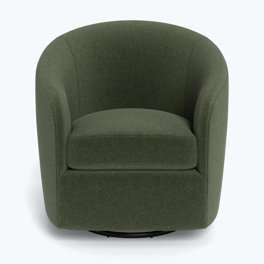 Step into timeless comfort with the Hudson Swivel Glider, an exclusive offering from ABC Carpet & Home. This chair combines classic design with soothing motion, featuring both a smooth swivel and gentle gliding action that make it the perfect spot for relaxing, reading, or even rocking a little one to sleep. With its graceful curved back and versatile swivel glider base, the Hudson Swivel Glider effortlessly transitions from one use to another, providing unparalleled ease and comfort.Designed to suit smaller living rooms, nurseries, or compact professional spaces, the Hudson Swivel Glider offers a sleek silhouette without sacrificing comfort. The chair’s compact design allows it to fit seamlessly into any space, while still providing ample room to lounge and unwind.What sets the Hudson Swivel Glider apart is its plush, blend-down seat cushion, filled with a luxurious mix of dense foam and feather-down, carefully washed to meet hypoallergenic standards. This unique blend offers the perfect balance of softness and support, cradling you in comfort whether you’re enjoying a quiet moment alone or comforting a loved one. The chair’s curved back adds both visual charm and ergonomic support, enhancing its appeal as the ultimate relaxation chair.Crafted with a sustainably sourced Goodwood frame, the Hudson Swivel Glider embodies eco-conscious design and long-lasting quality. Its sturdy construction ensures it remains a staple in your home for years to come, while offering peace of mind knowing it's made with the environment in mind. The combination of sustainable materials and superior craftsmanship delivers a chair that’s as responsible as it is luxurious.Customizing your Hudson Swivel Glider is simple, with over 80 fabric options available. Choose from rich velvets, soft linens, durable blends, and more to create a chair that perfectly matches your personal style and the aesthetic of your home. Whether you're designing a cozy reading nook, adding a chic accent to your nursery, or enhancing your living room, the variety of fabrics ensures a perfect fit for any space.Handcrafted to order and delivered within 8-10 weeks, the Hudson Swivel Glider promises both luxury and comfort. Its timeless design, paired with the functional gliding and swiveling features, makes it a must-have for those seeking both style and relaxation in one chair. Whether you're rocking, lounging, or simply enjoying the moment, the Hudson Swivel Glider offers a blend of sophistication and comfort for every home.