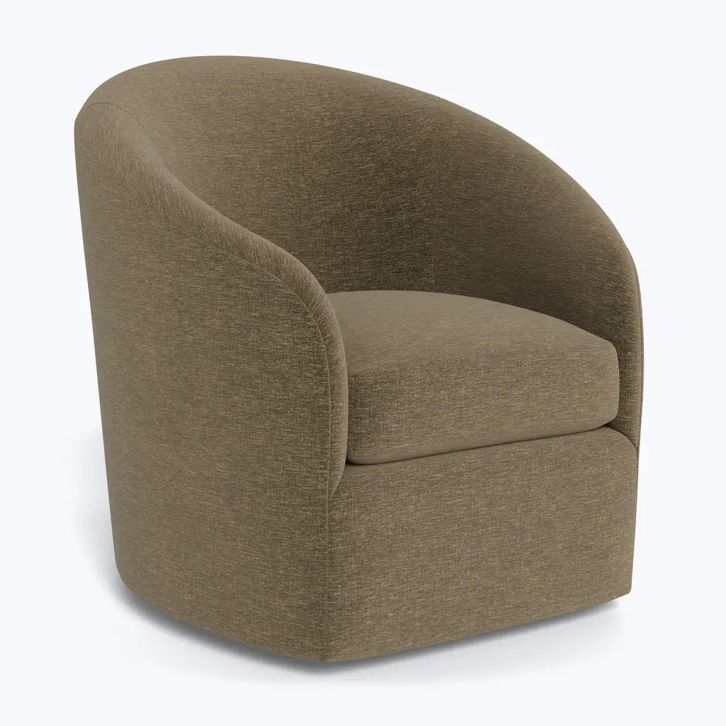 Step into timeless comfort with the Hudson Swivel Glider, an exclusive offering from ABC Carpet & Home. This chair combines classic design with soothing motion, featuring both a smooth swivel and gentle gliding action that make it the perfect spot for relaxing, reading, or even rocking a little one to sleep. With its graceful curved back and versatile swivel glider base, the Hudson Swivel Glider effortlessly transitions from one use to another, providing unparalleled ease and comfort.Designed to suit smaller living rooms, nurseries, or compact professional spaces, the Hudson Swivel Glider offers a sleek silhouette without sacrificing comfort. The chair’s compact design allows it to fit seamlessly into any space, while still providing ample room to lounge and unwind.What sets the Hudson Swivel Glider apart is its plush, blend-down seat cushion, filled with a luxurious mix of dense foam and feather-down, carefully washed to meet hypoallergenic standards. This unique blend offers the perfect balance of softness and support, cradling you in comfort whether you’re enjoying a quiet moment alone or comforting a loved one. The chair’s curved back adds both visual charm and ergonomic support, enhancing its appeal as the ultimate relaxation chair.Crafted with a sustainably sourced Goodwood frame, the Hudson Swivel Glider embodies eco-conscious design and long-lasting quality. Its sturdy construction ensures it remains a staple in your home for years to come, while offering peace of mind knowing it's made with the environment in mind. The combination of sustainable materials and superior craftsmanship delivers a chair that’s as responsible as it is luxurious.Customizing your Hudson Swivel Glider is simple, with over 80 fabric options available. Choose from rich velvets, soft linens, durable blends, and more to create a chair that perfectly matches your personal style and the aesthetic of your home. Whether you're designing a cozy reading nook, adding a chic accent to your nursery, or enhancing your living room, the variety of fabrics ensures a perfect fit for any space.Handcrafted to order and delivered within 8-10 weeks, the Hudson Swivel Glider promises both luxury and comfort. Its timeless design, paired with the functional gliding and swiveling features, makes it a must-have for those seeking both style and relaxation in one chair. Whether you're rocking, lounging, or simply enjoying the moment, the Hudson Swivel Glider offers a blend of sophistication and comfort for every home.