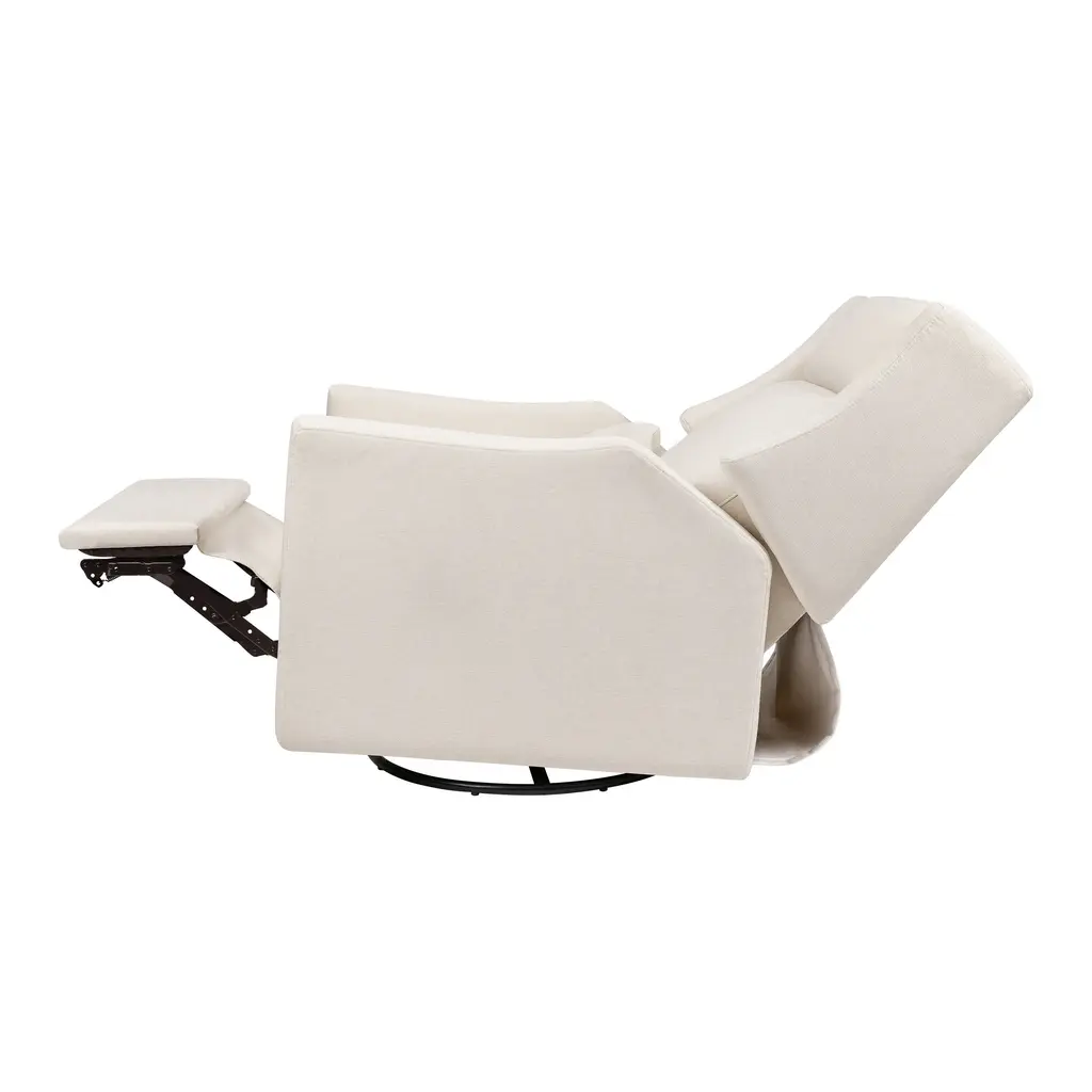 Upgrade your relaxation experience with the Kiwi Plus Glider Recliner from Babyletto. This recliner, coveted by parents worldwide, now features an adjustable headrest for personalized comfort and a convenient USB port for charging small devices. Its smooth swivel and gentle gliding motion make it perfect for bonding with your baby or unwinding after a long day. The modern design and plush cushioning add a touch of luxury to any nursery or living space. Highlights