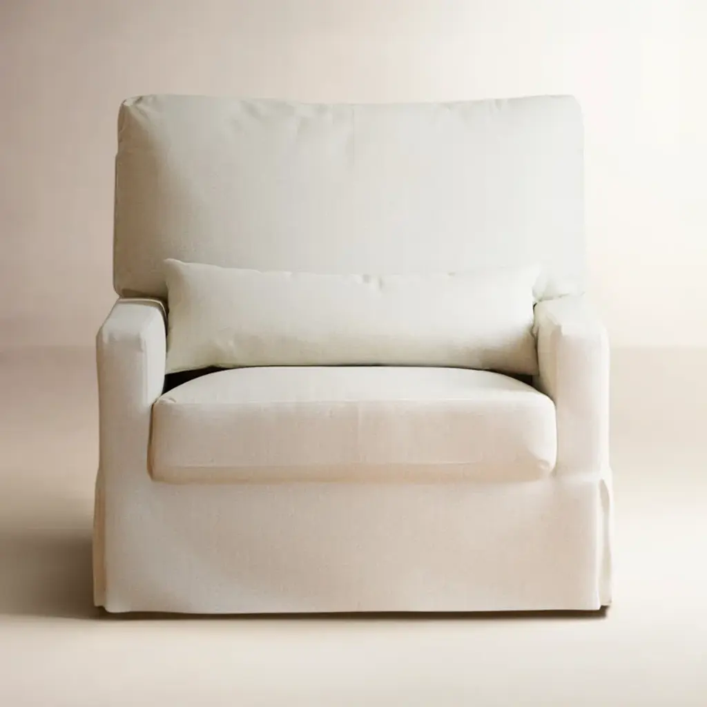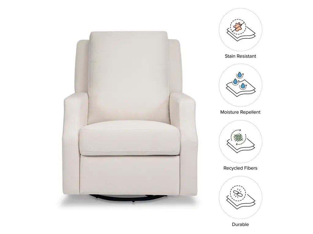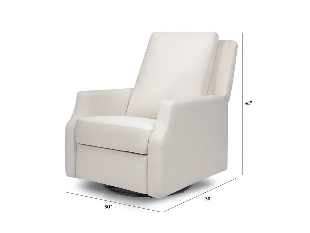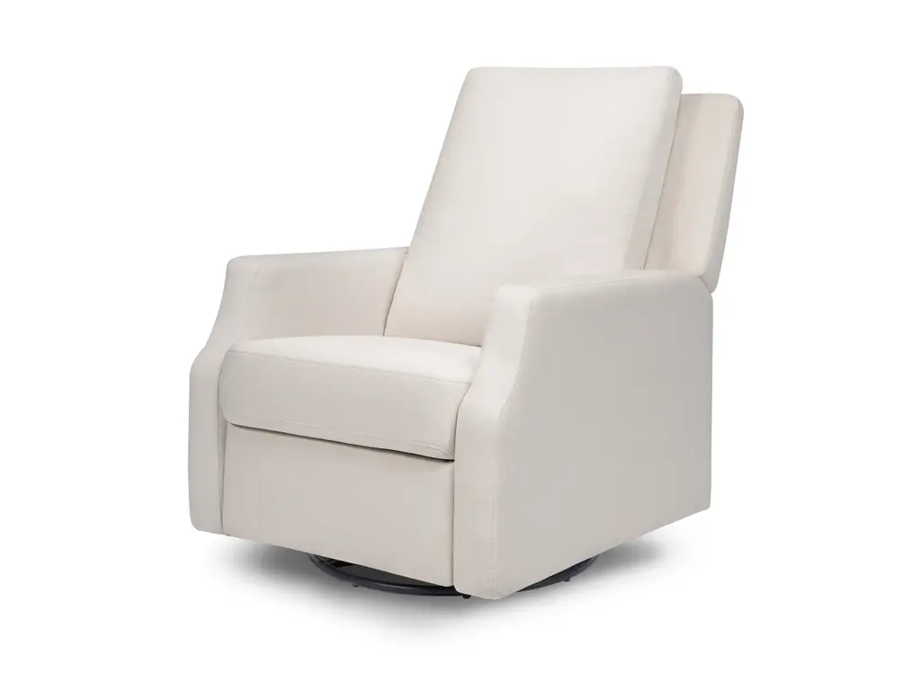 The Crewe Recliner blends form and function with its crisp, contemporary design and comfortable seat. Its smooth, back-and-forth gliding motion helps you rock your baby to sleep with ease, while the plush back cushion, hidden recline mechanism, and convenient swivel create an inviting repose for both you and your baby.