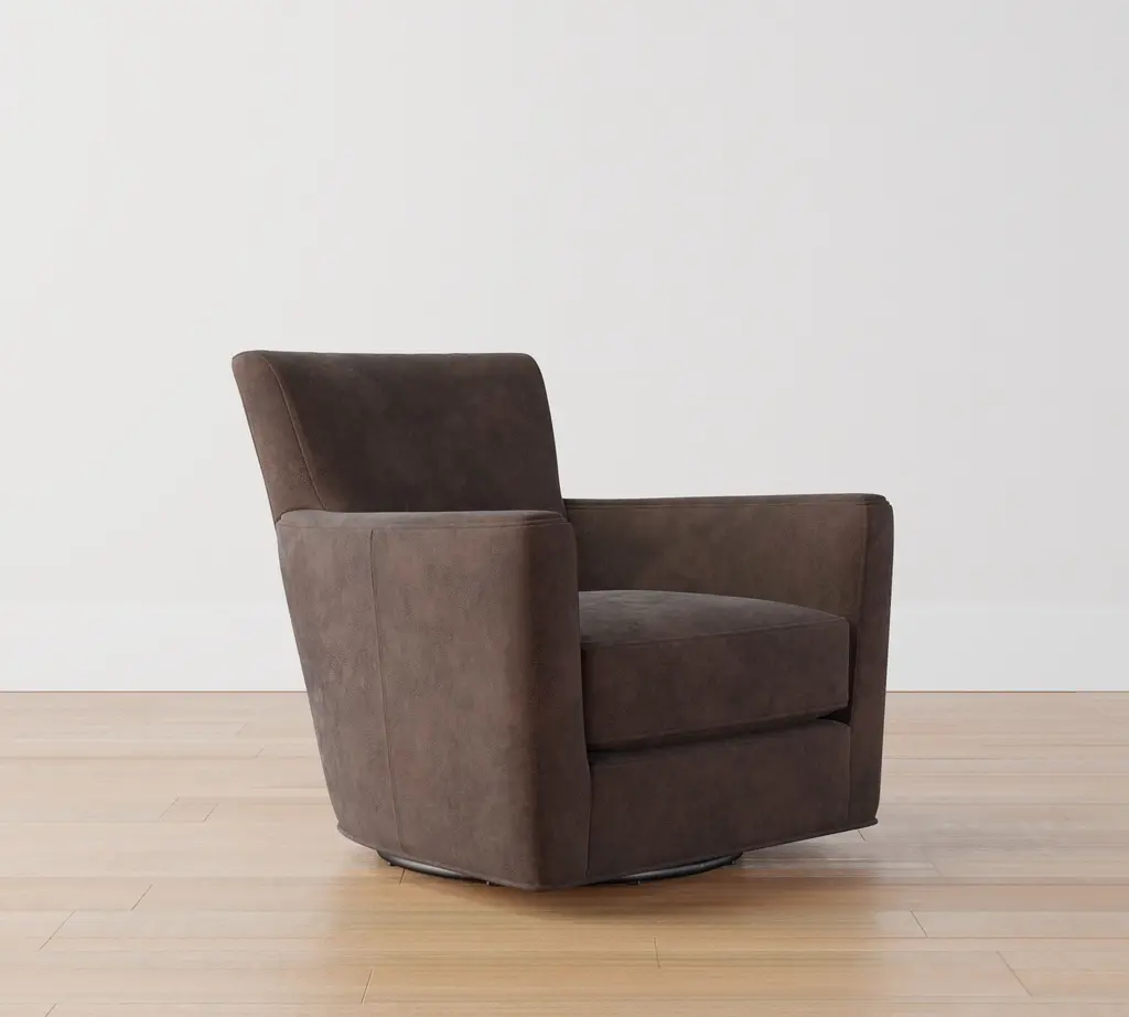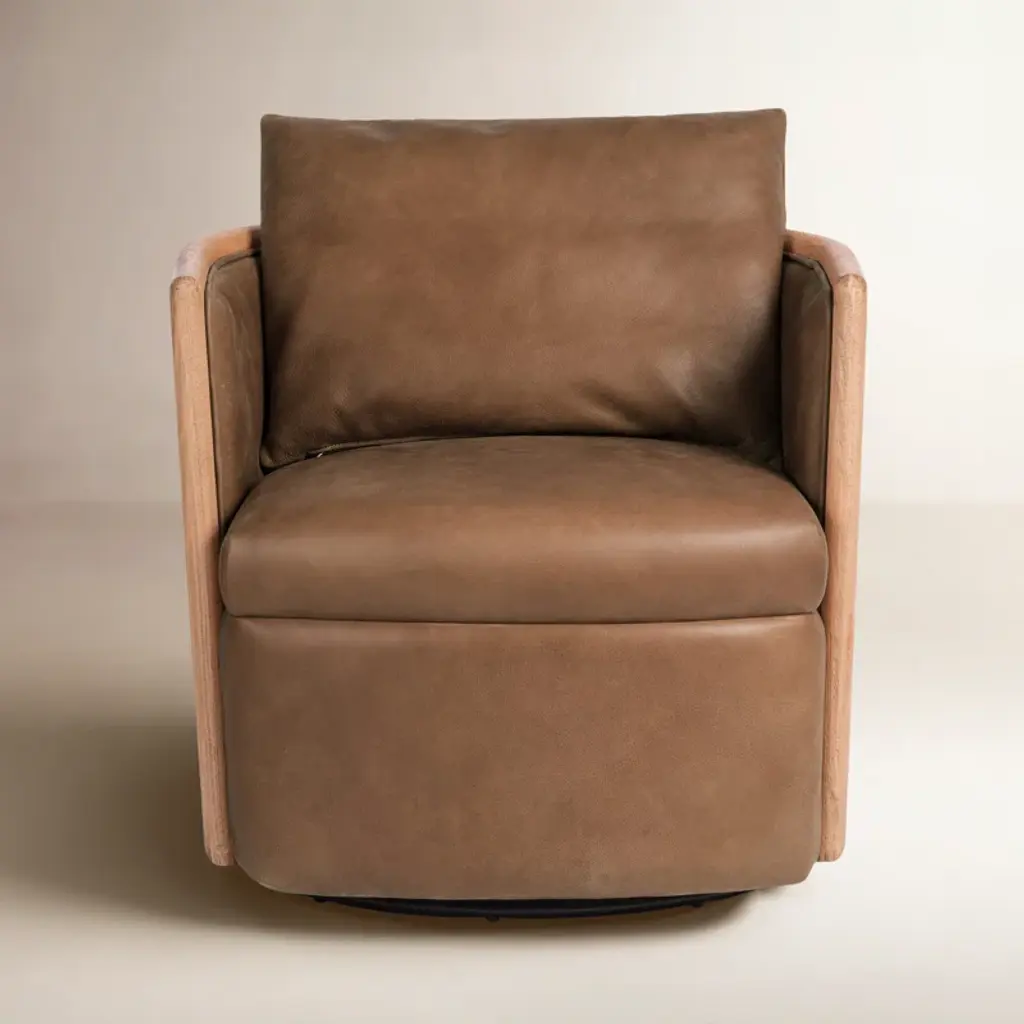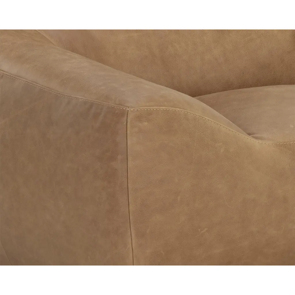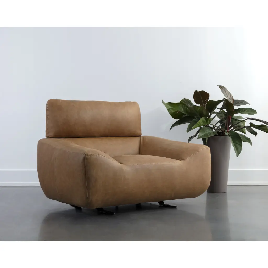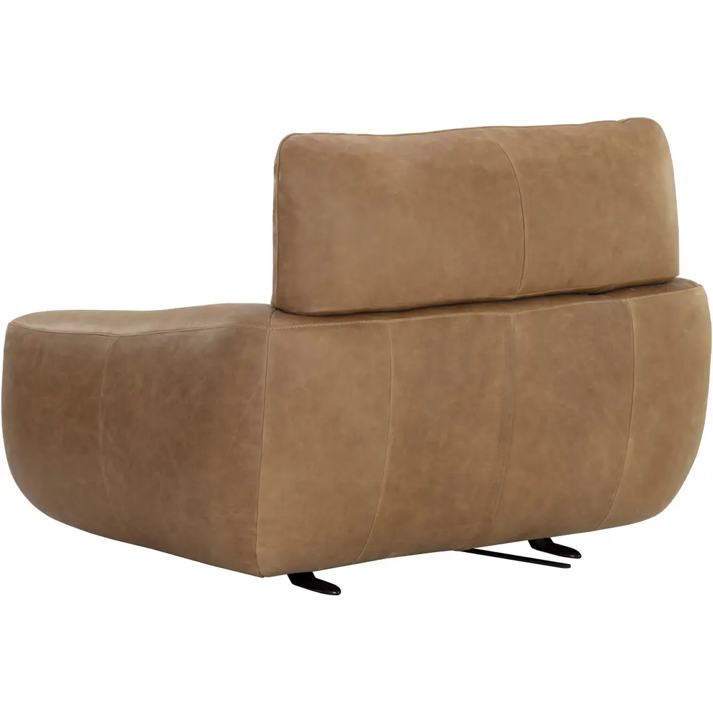 The Paget Glider Lounge Chair highlights the beauty of contemporary design. Upholstered in our camel Italian leather, this glider lounge chair invites you to indulge in comfort. Features a locking mechanism at the back. Handle with Care: This design has been crafted with leather. Leather is a natural material as such, colour variations, markings, wrinkles, grooves and light scratches are acceptable and appreciated characteristics. No two pieces are alike. Visit our Product Care page for more information on how to ensure the lasting beauty of this piece.