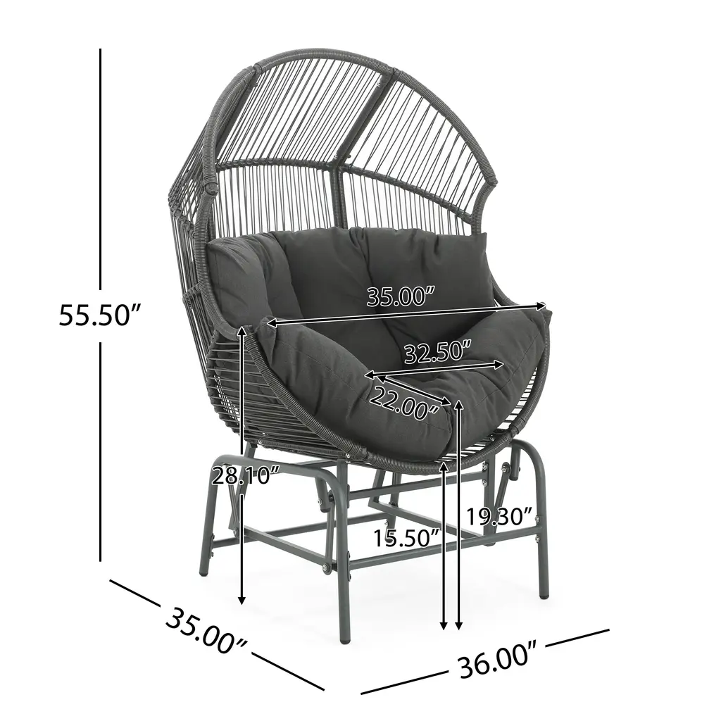 Natural Elegance: Embrace the beauty of nature with our handcrafted outdoor rattan rocking chairs. This adds a touch of elegance to any patio, deck, or garden, seamlessly blending into your outdoor living space.Comfortable Relaxation: Sink into luxurious comfort with every gentle glid. The ergonomic design and cushioned seating provide optimal support for your back and neck, making it the perfect spot to unwind after a long day.Easy Maintenance: Keeping your outdoor rattan furniture looking its best is a breeze. Regular cleaning with mild soap and water is all it takes to maintain its natural luster and extend its lifespan.Increases Outdoor Living Enjoyment: Encourage more quality time outdoors with family and friends. Our rattan glider chairs invite you to slow down, savor the moment, and create lasting memories surrounded by nature's beauty.