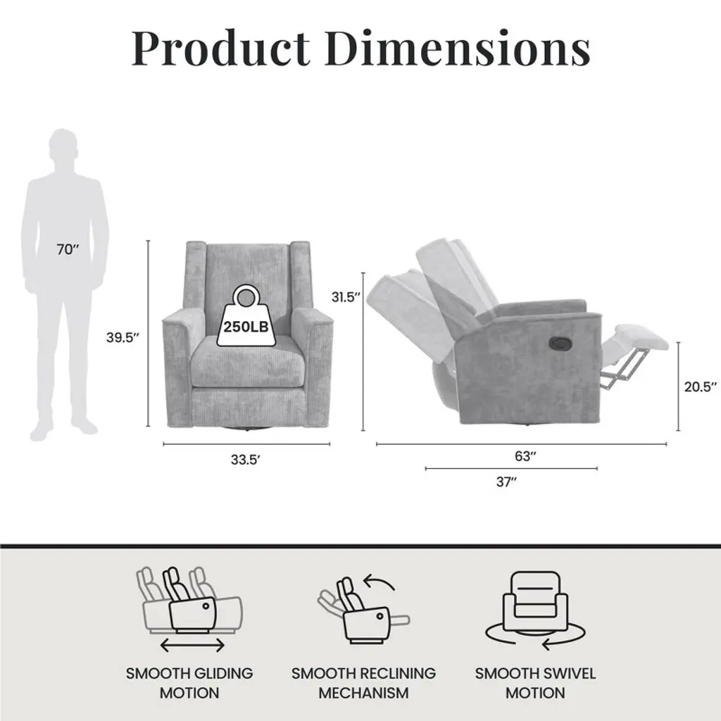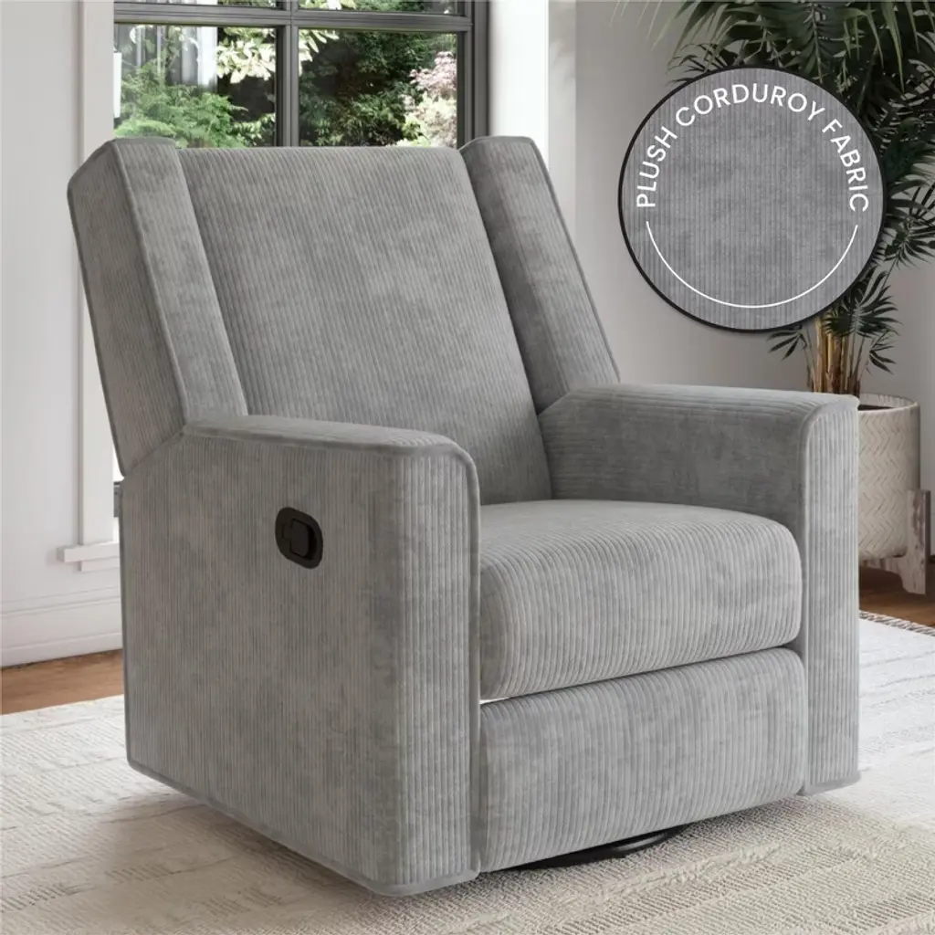 Realrooms Elysian Swivel Recliner Chair & Glider, Light Gray Corduroy