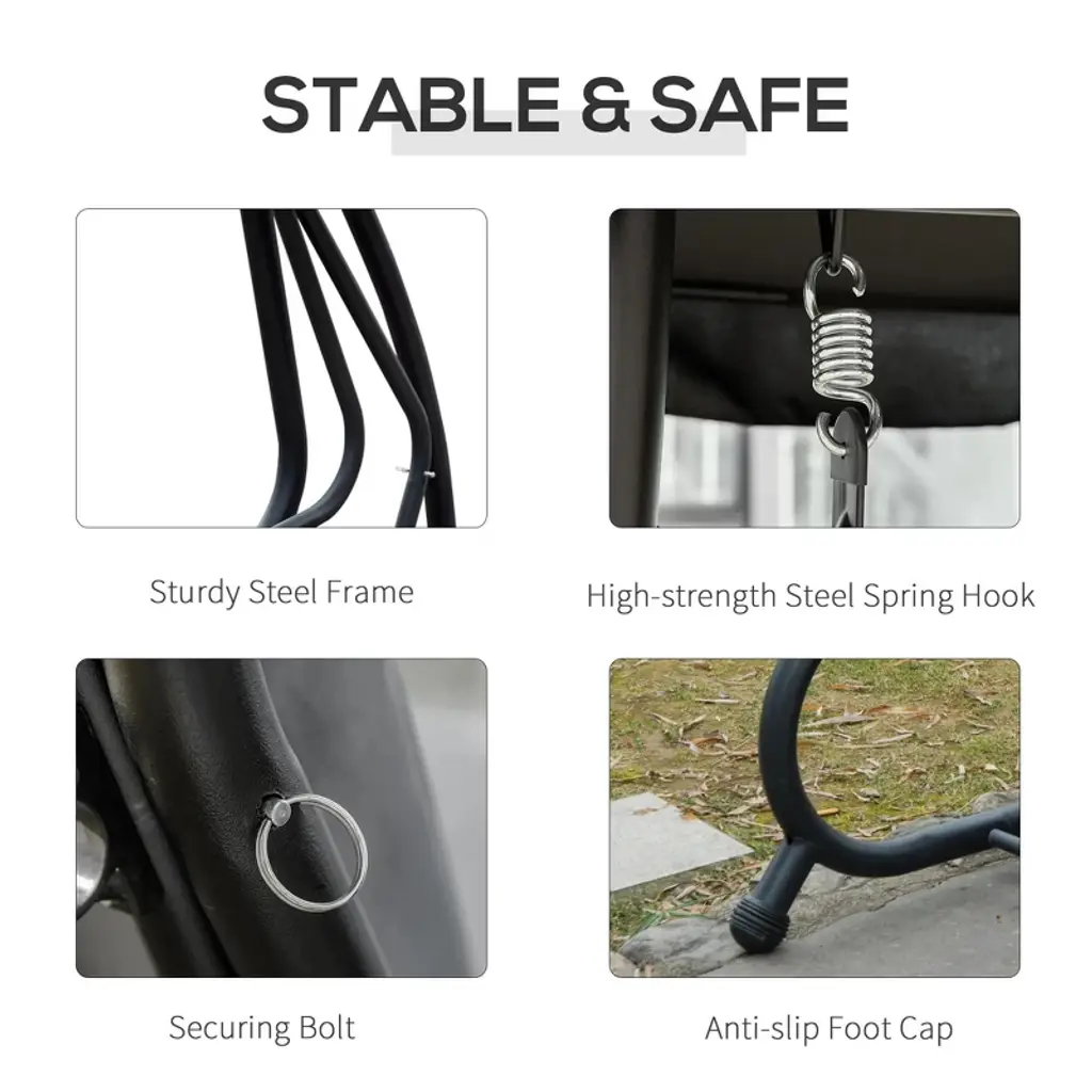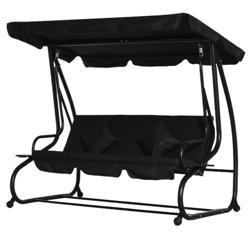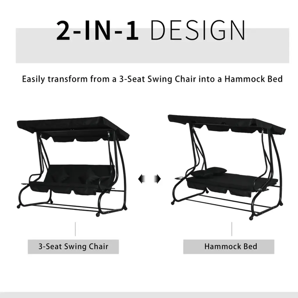 Resenkos 3-seat Swing Chair, Convertible Flatbed Glider With Adjustable Canopy, Black