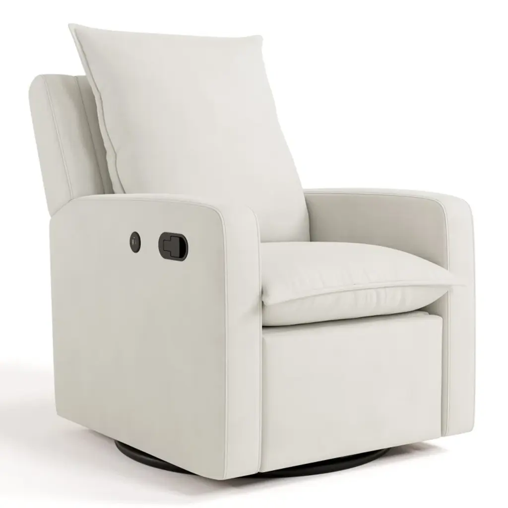 This is destined to be the site of hours of snuggles, feeding sessions, story times and so much more for many years to come. That's why comfort, function, and style should all be considered and that's exactly what we did when we designed this combination recliner and swivel chair. From the easy reclining feature to the plush cushions to the two USB ports, you can make yourself very comfortable here. (With or without a baby in your arms!). Anyone in the family would be comfortable. With super plush cushions that are both upscale and perfectly cozy, you will be comfortable for marathon feeding sessions. The track arms are made to help you easily settle in and get out of the chair. Available in blush and ivory, you can get one that complements your decor. You can also rest assured, as it's been expertly tested to meet all applicable federal safety standards for the category to ensure the safest environment for your child.