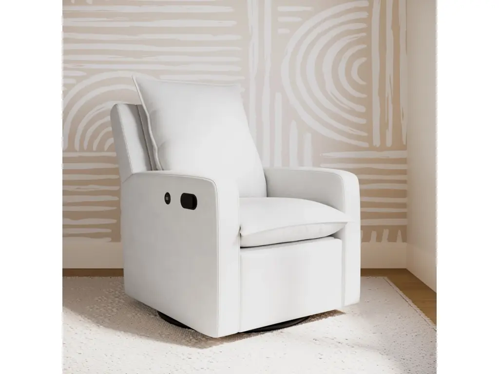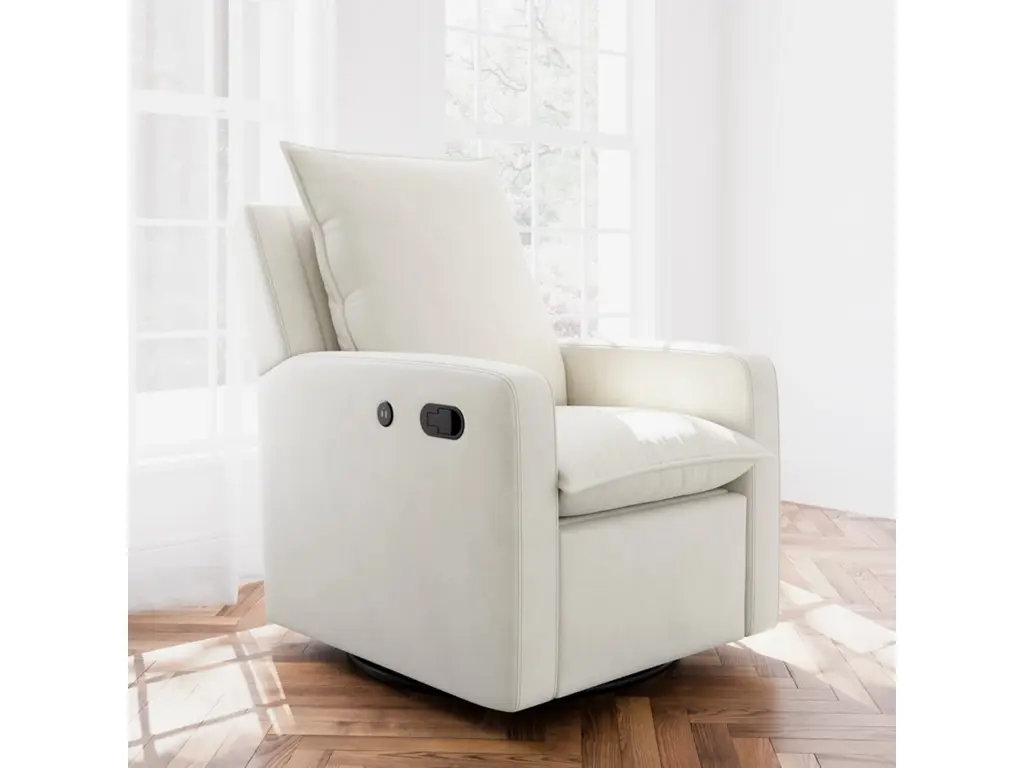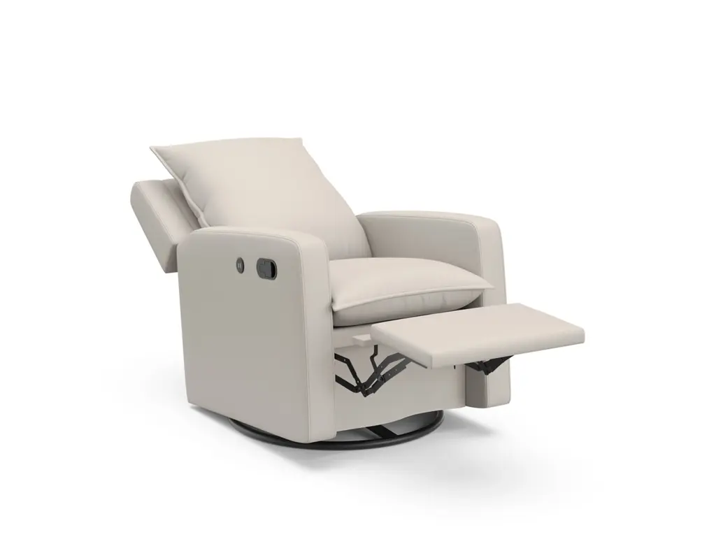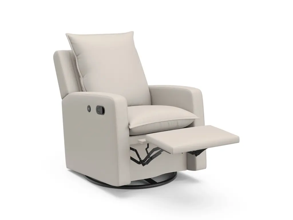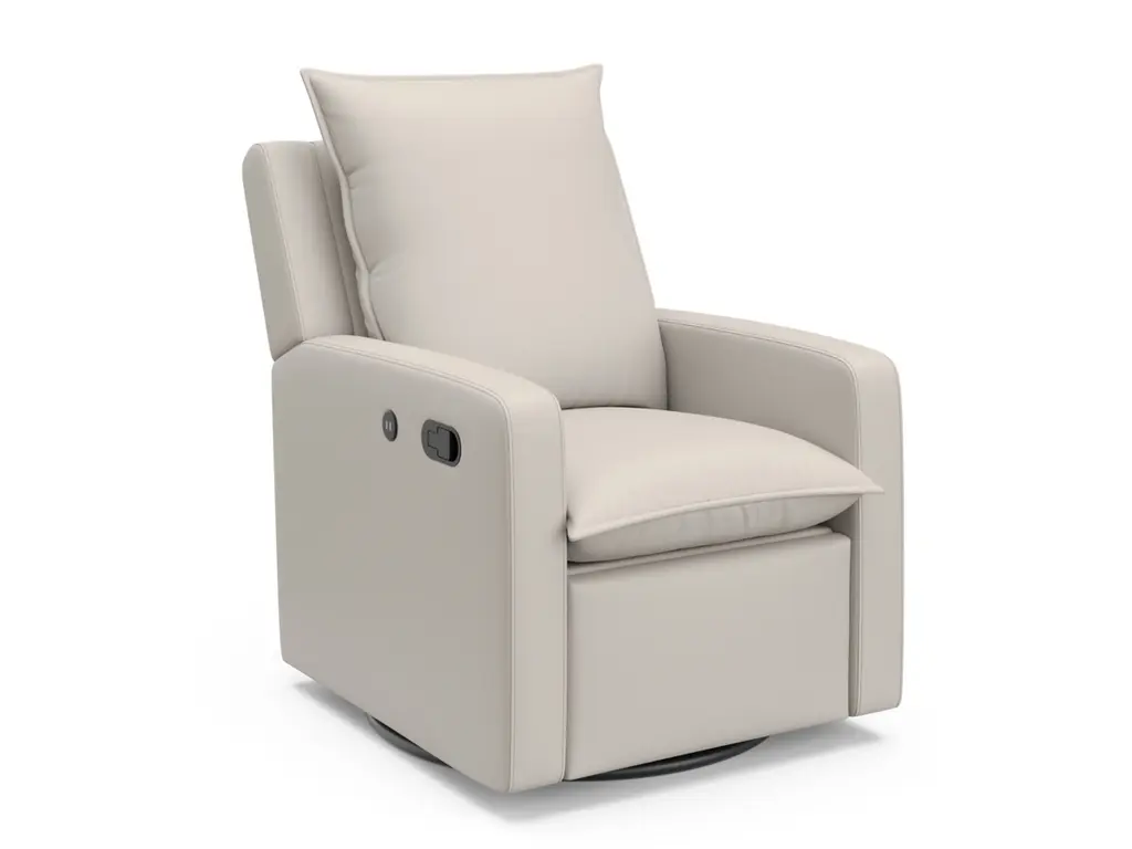 We believe mamas should get the say on the glider for the nursery. Why? This is destined to be the site of hours of snuggles, feeding sessions, story times and so much more for many years to come. That's why comfort, function and style should all be considered, and that's exactly what we did when we designed this combination recliner and swivel chair. From the easy reclining feature to the plush cushions to the two USB ports, you can make yourself very comfortable here (With or without baby in your arms!). The Storkcraft Timeless Reclining Glider with USB Charging Port was truly designed with mamas in mind. With super plush cushions that are both upscale and perfectly cozy, you will be comfortable for marathon feeding sessions. The track arms are made to help you easily settle in and get out of the chair. You can also be rest assured, as it's been tested to meet the applicable federal safety standards.
