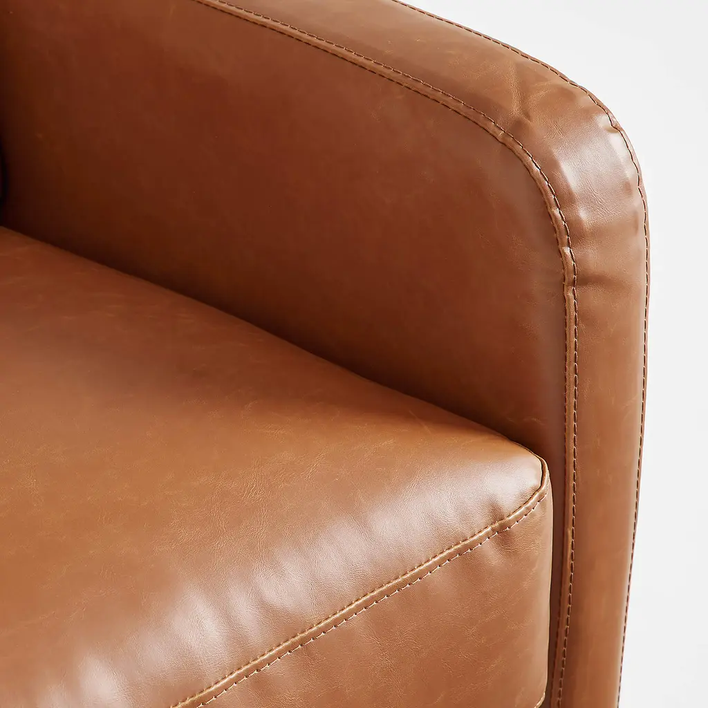For late-night feedings, storybook readings and snuggly moments in between, our exclusive Wally glider boasts the softness, support and gentle motion needed to help lull baby (and maybe you) to sleep. We don't know what we love more: the luxe, statement-making design, how buttery-soft the vegan leather feels or the fact it's built and upholstered by hand. (Can we call it a three-way tie?) With a 360-degree swivel and smooth, rhythmic glider, the gleaming golden base does a lot more than just look good. Pair it with the matching storage ottoman (sold separately) to complete the room.Need help finding the right chair for your space, style and needs? Check out How to Choose a Nursery Rocking Chair.