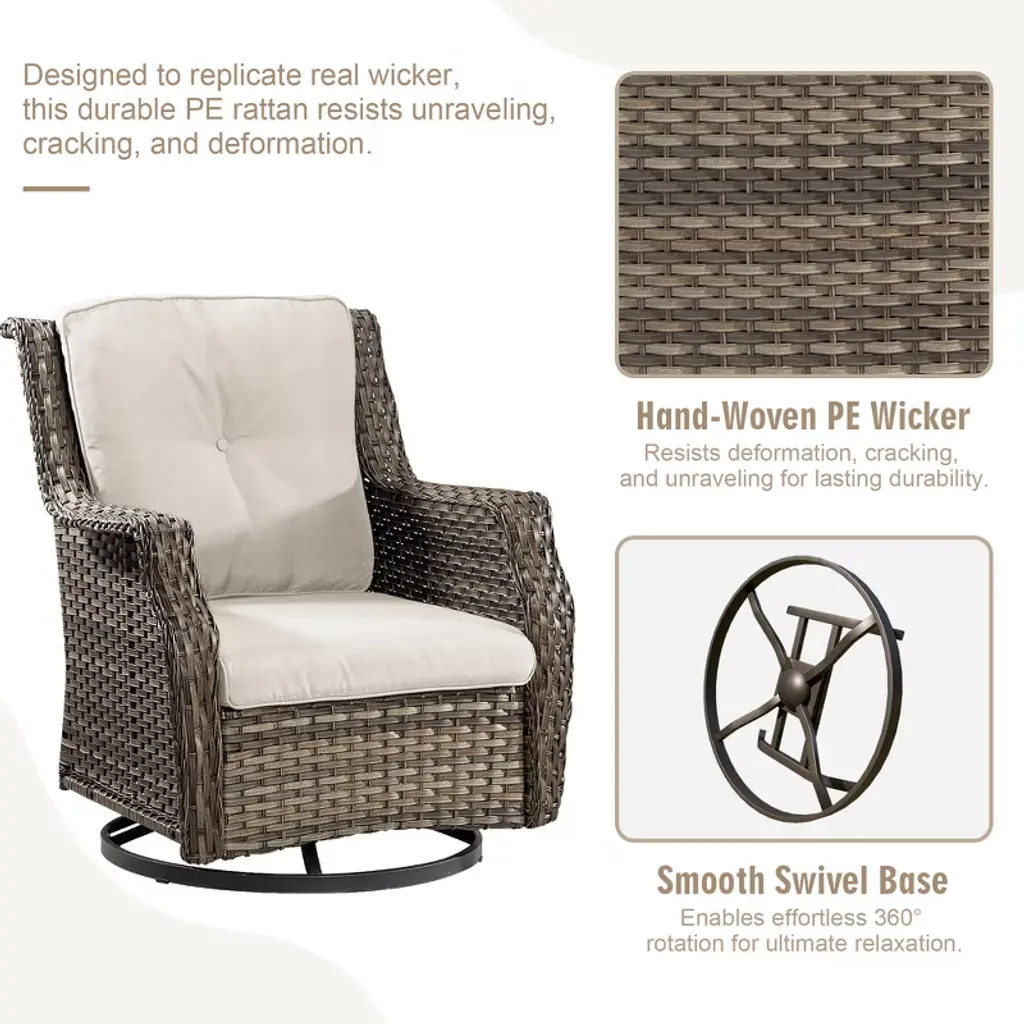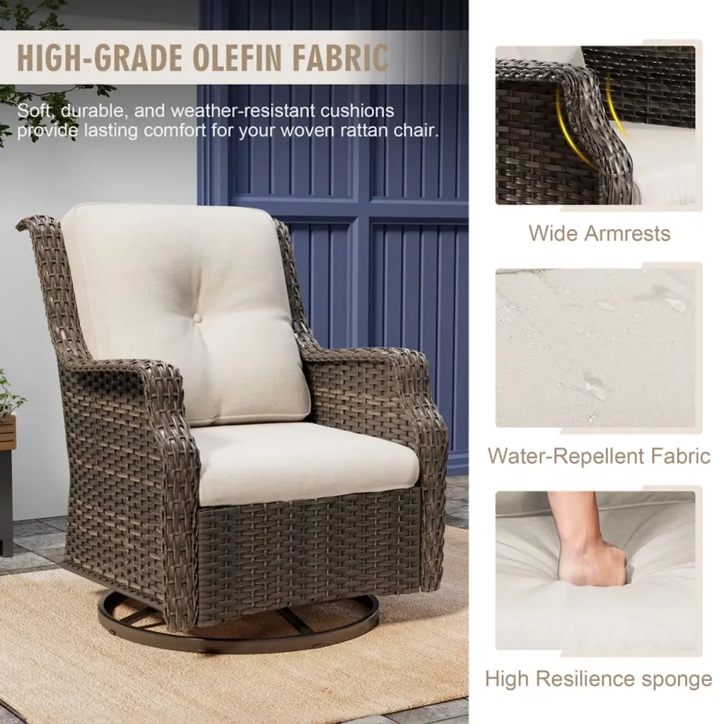 Yardsight 2-piece Outdoor Wicker Swivel Glider Chair Set With Red Cushions And Glass Table For Patio Or Garden