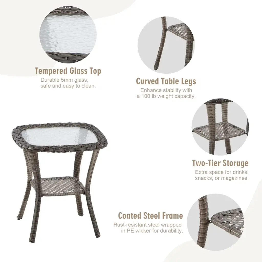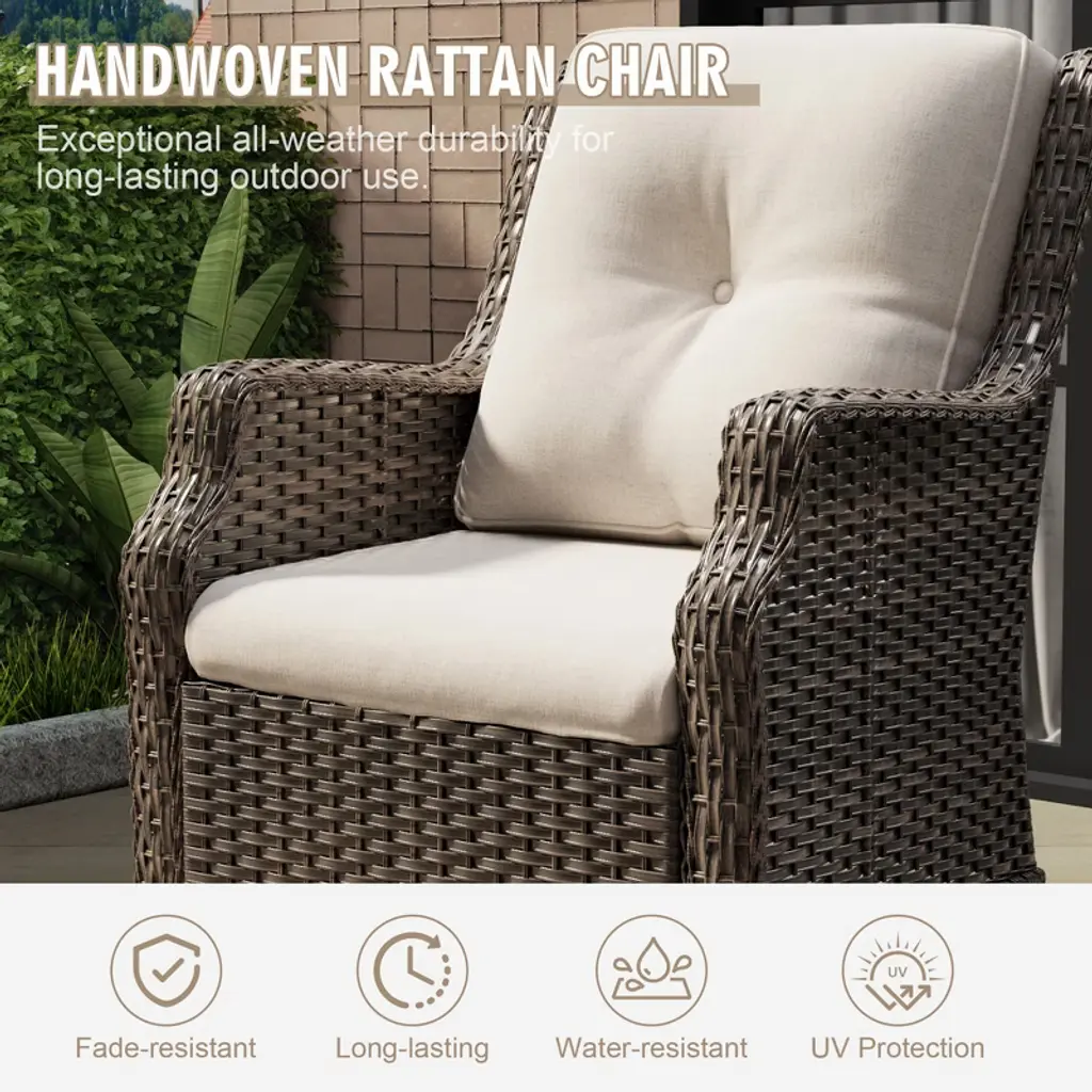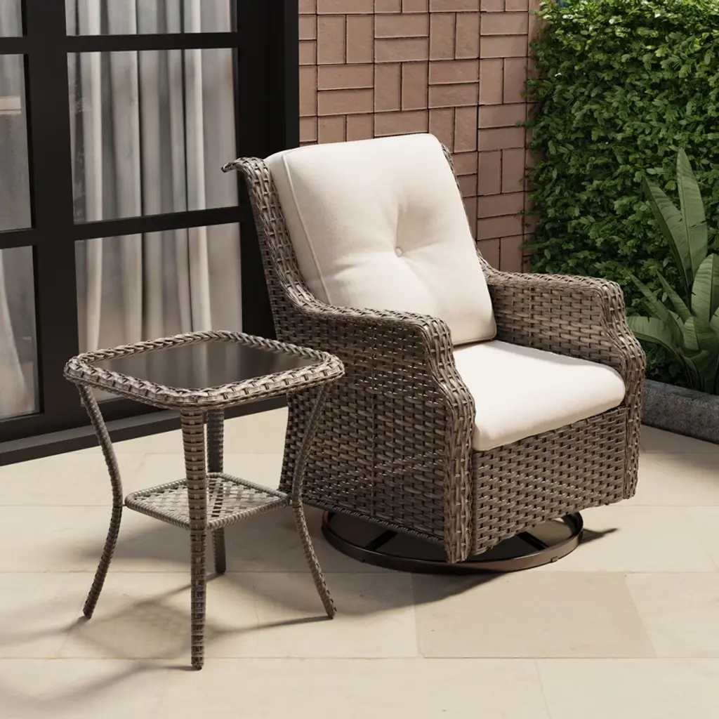 Relax in comfort and style with this 2-piece outdoor wicker swivel glider chair set. Featuring a handwoven all-weather rattan frame and thick red cushions, this set brings a pop of color and modern charm to your patio, garden, or balcony. The swivel glider chair offers a smooth 360¡ã rotation and gentle rocking motion, making it perfect for reading, chatting, or simply enjoying the fresh air. The matching side table with a tempered glass top provides the ideal spot for your coffee, snacks, or decor. Built to last with a rust-resistant steel frame and fade-resistant fabric, this set combines durability and comfort for year-round outdoor enjoyment.