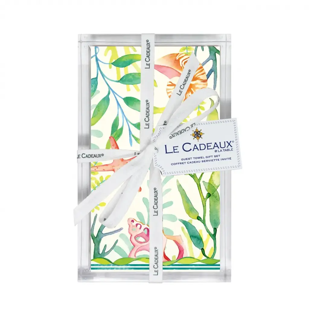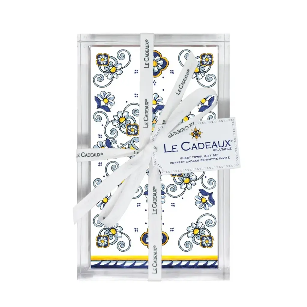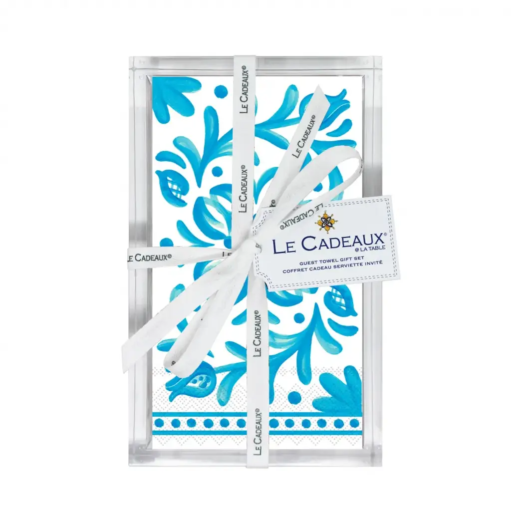 Acrylic Holder (Empty) For Guest Towel Size Napkins Tied With Le Cadeaux Branded Ribbon And Tag