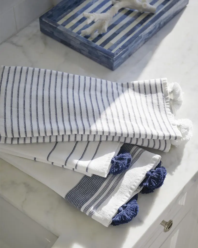 Traditionally woven in the spirit of Turkish foutas. Windswept stripes. Whimsical tassels.