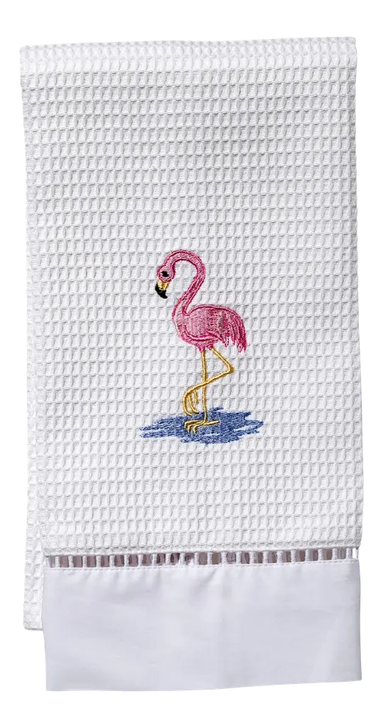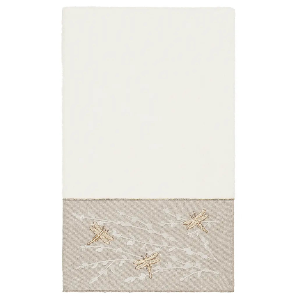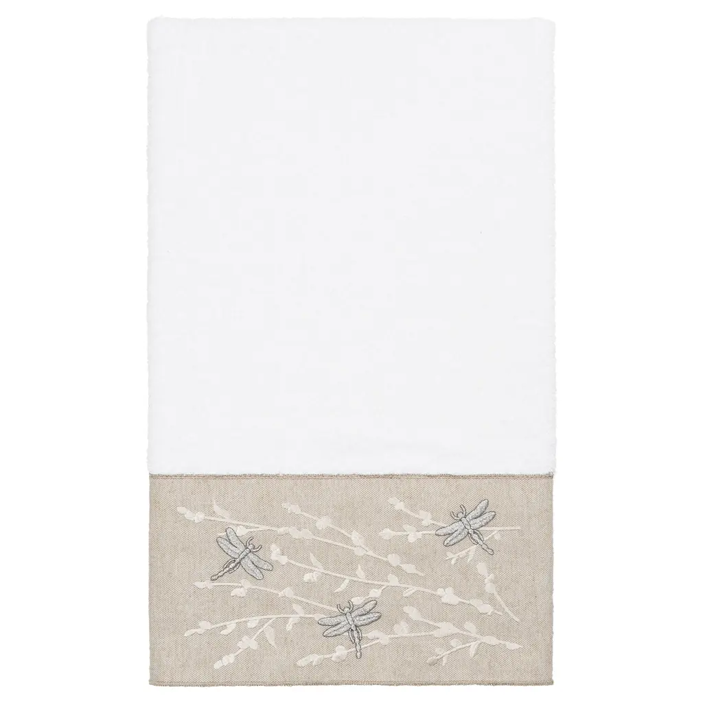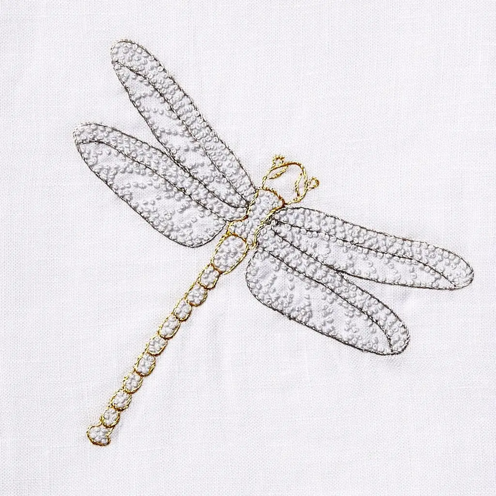Offered exclusively through One Kings Lane, this exquisite guest towel is made from crisp white linen and hand-embroidered with a striking dragonfly motif. Classic ladder stitching completes this design.