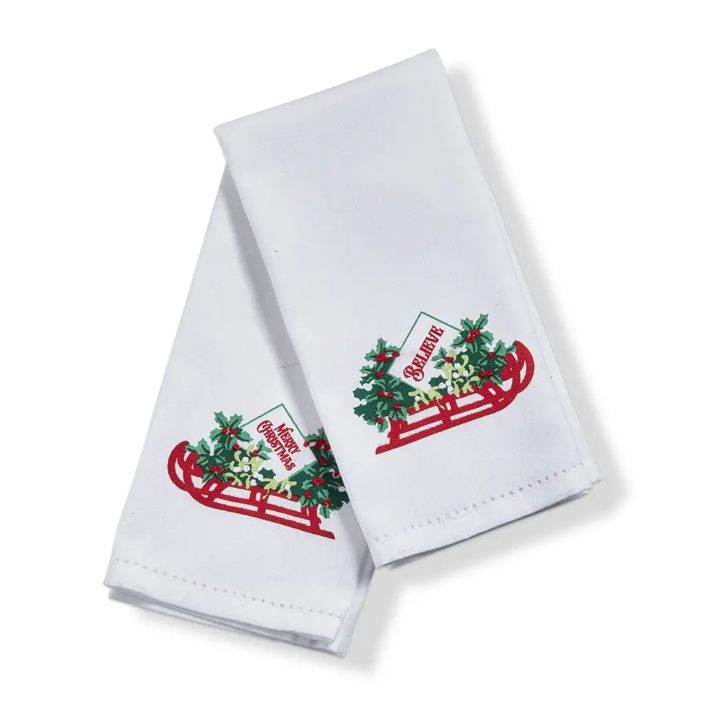Holly Leaf Sled Guest Towel S/2 - Multicolor - Same Size Set