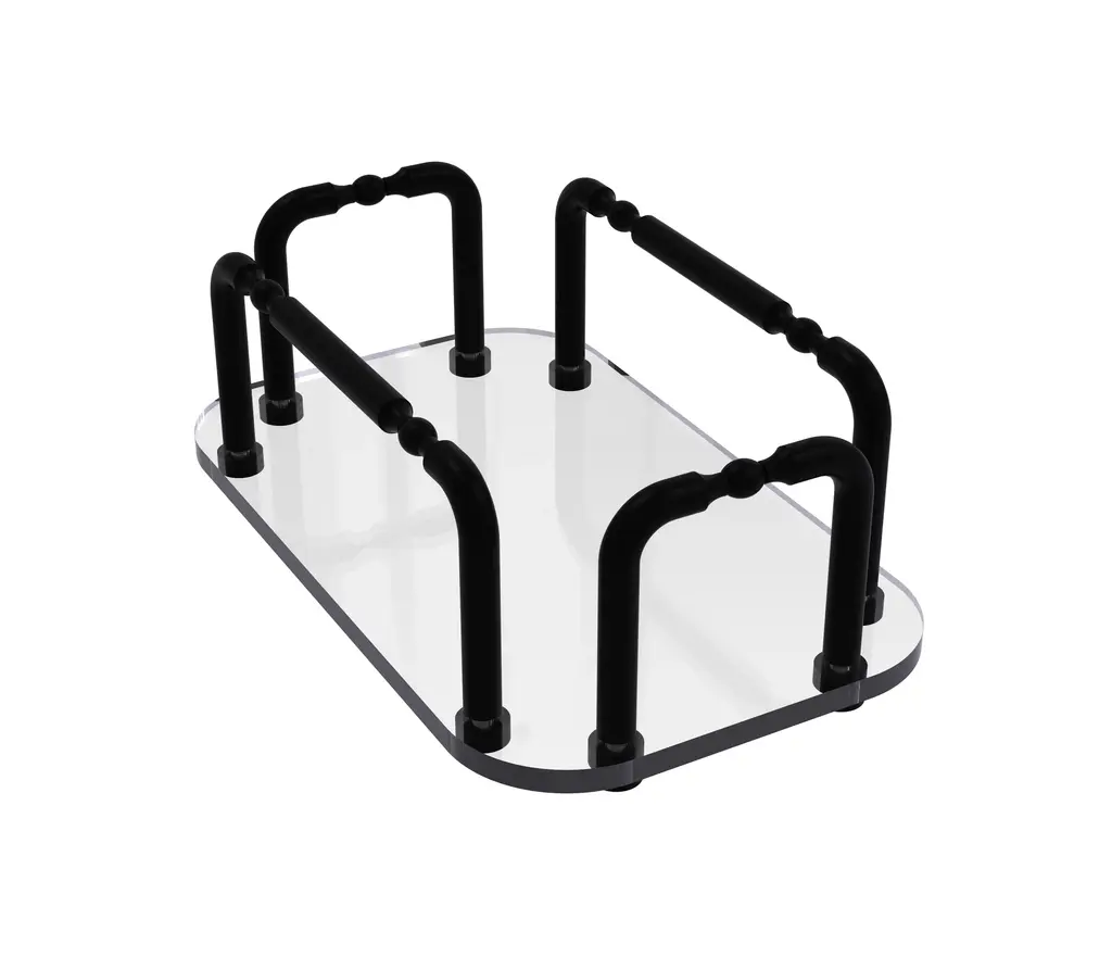 This elegant guest towel tray will add style and convenience to your bathroom decor. Ideally sized to hold your favorite guest towels or a standard box of Kleenex Tissues. Tempered glass and brass rails are used to make this item sturdy and stylish. Any of our lifetime designer finishes will provide a lifetime of use.Matte Black, a rich black satin-like finish that makes a bold, dramatic statementCrafted of the Finest Solid Brass MaterialsCreative space saving designDesigner Finish will provide corrosion free performanceAvailable in a variety of designer finishesTraditional design with classic design elementsProducts are provided with a limited lifetime warranty