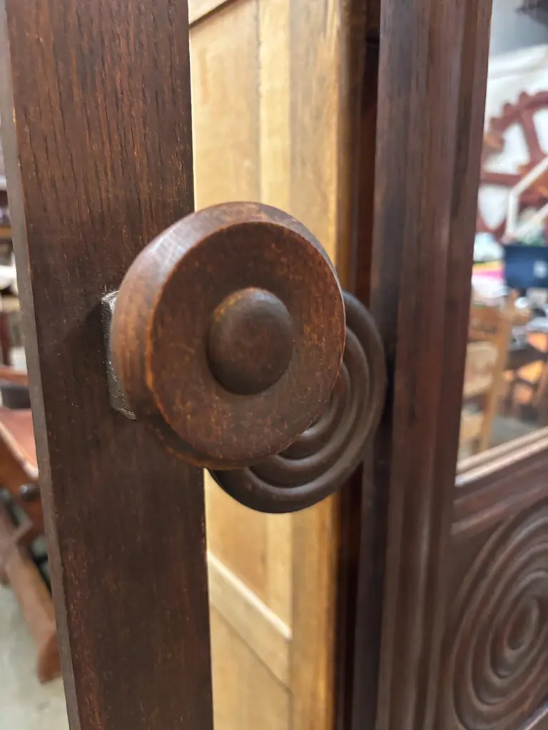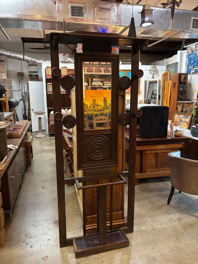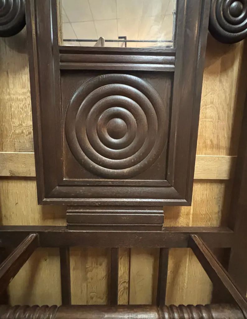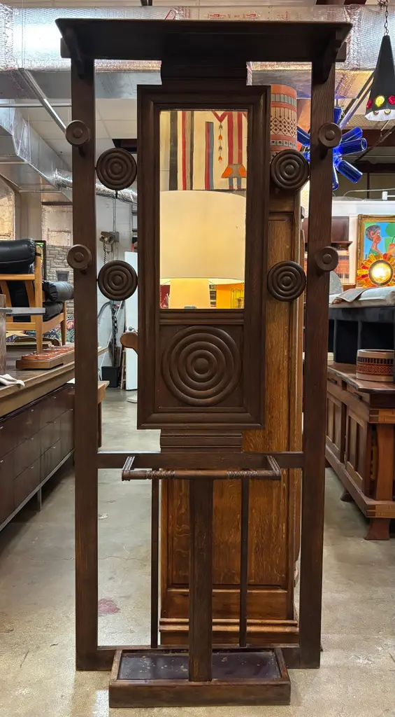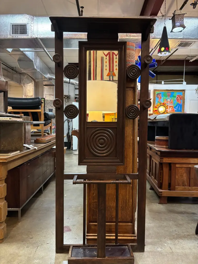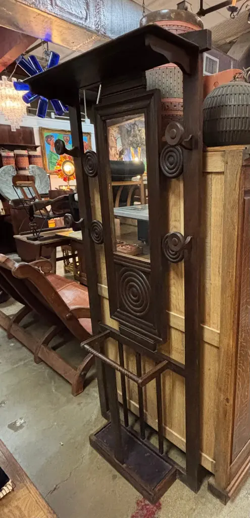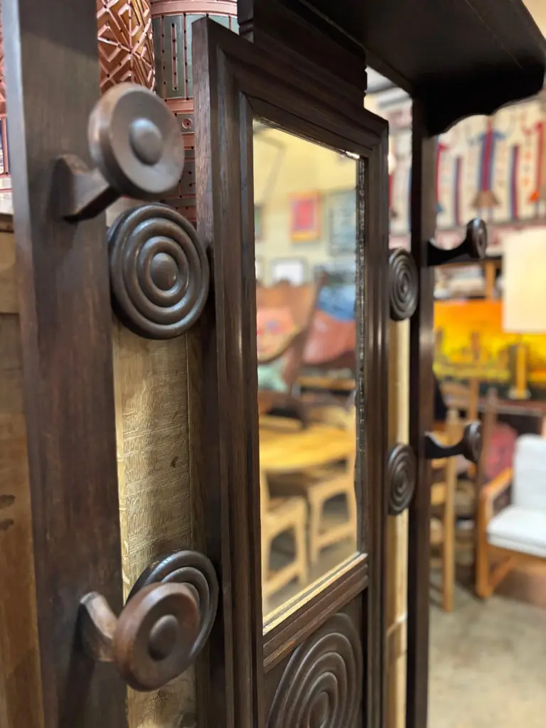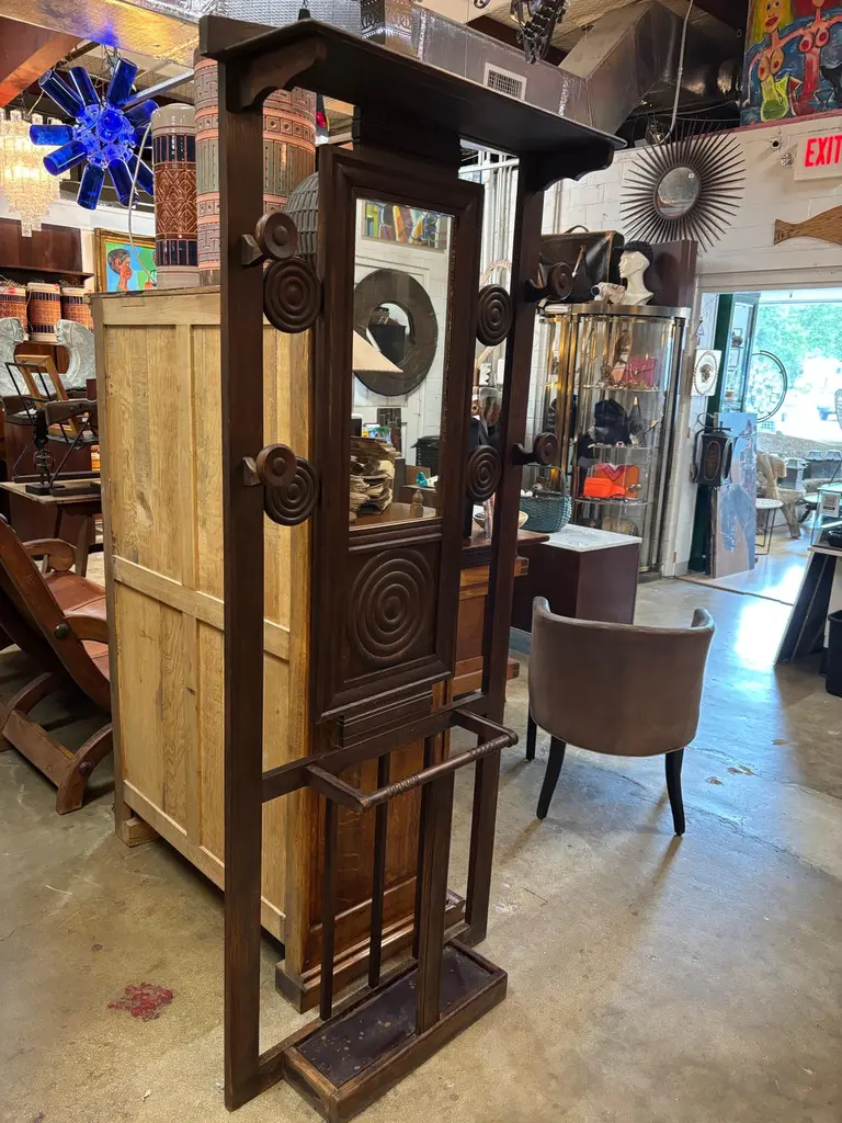 French mirrored hall tree in the style of Charles Dudouyt, circa 1950s, made of walnut. This hallway mirrored hall tree is in great overall condition.Dimensions: 31" x 9" x 76"