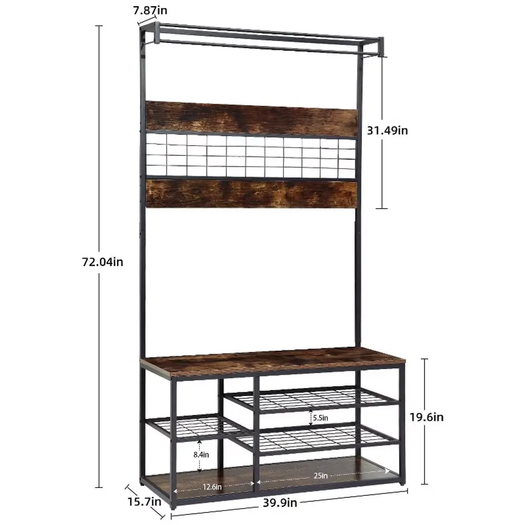 This versatile hall tree combines 5 adjustable hooks and 3 shoe shelves in a sturdy steel/MDF frame, offering customizable entryway storage with detachable components and anti-tip safety.