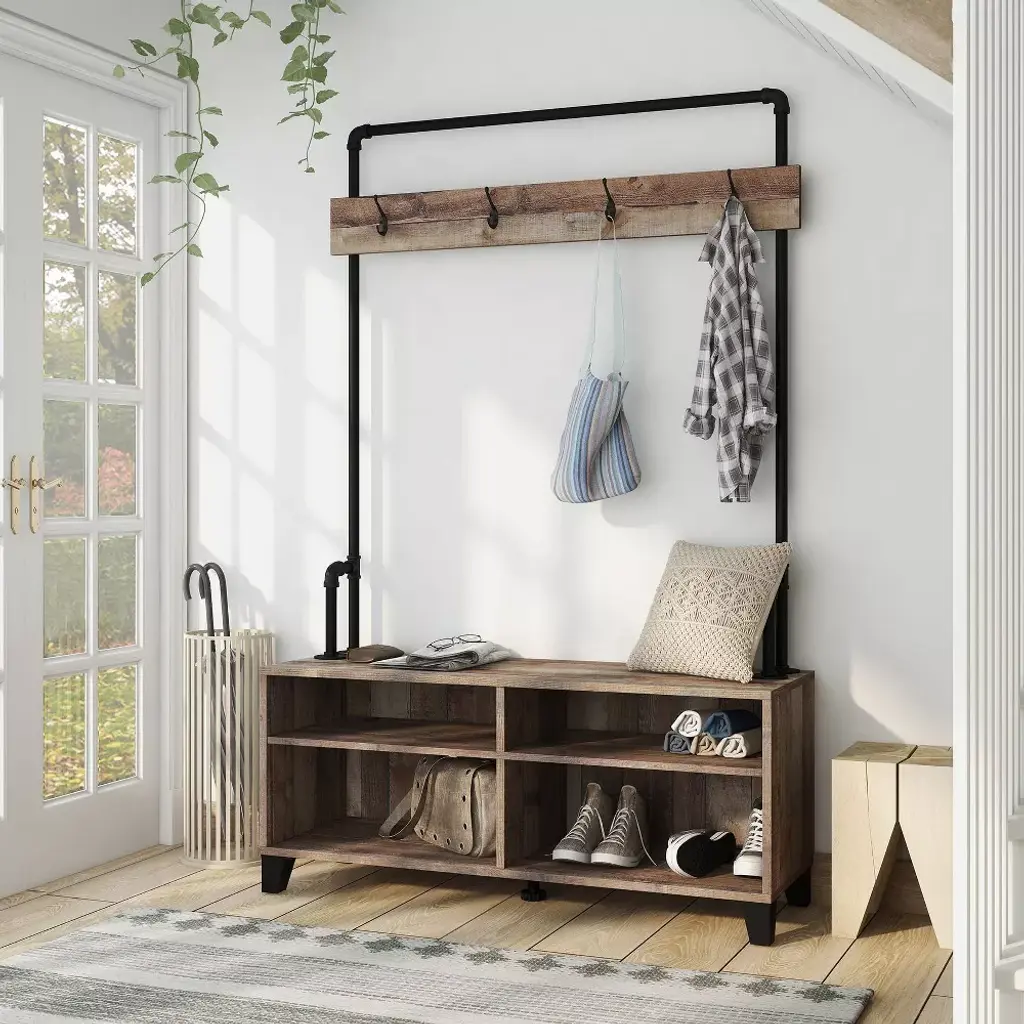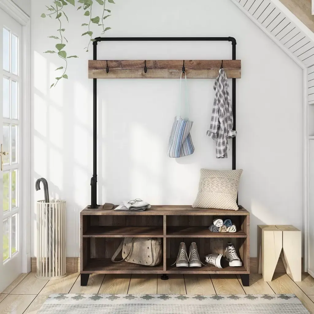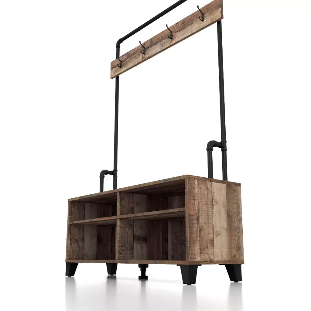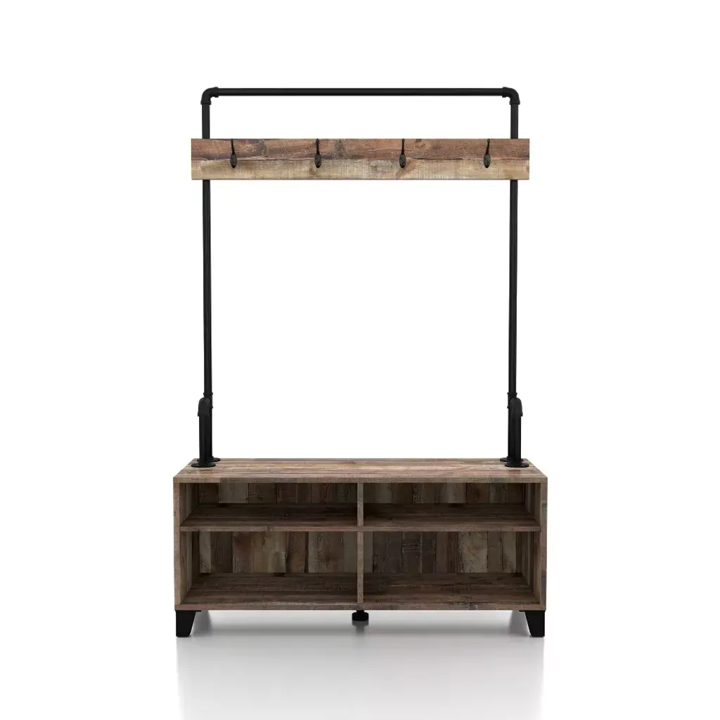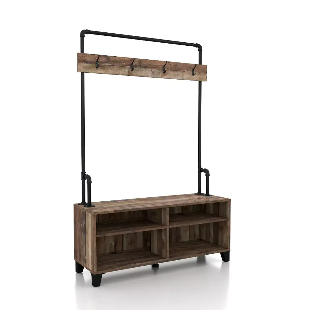 24/7 Shop At Home Lebarone Industrial 4 Shelf Hall Tree Reclaimed Barnwood: Entryway Organizer With Coat Rack