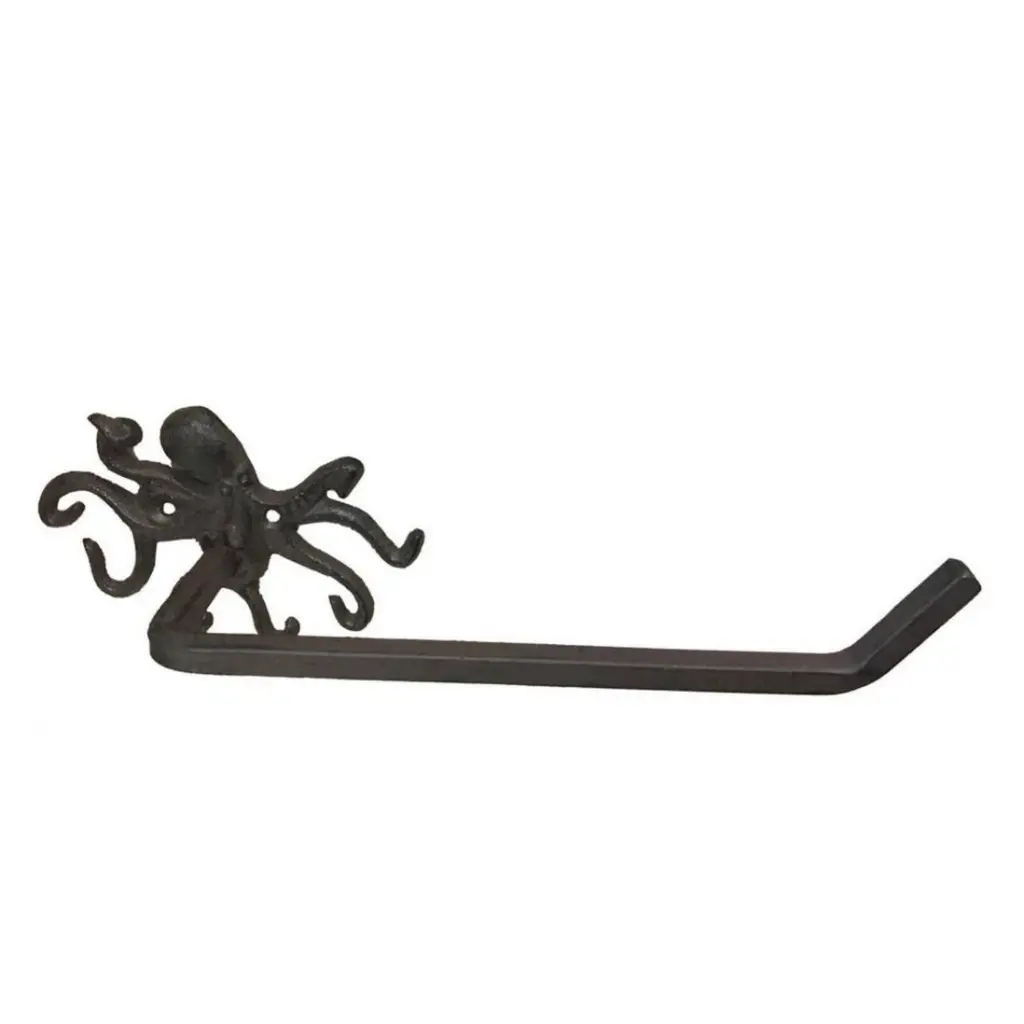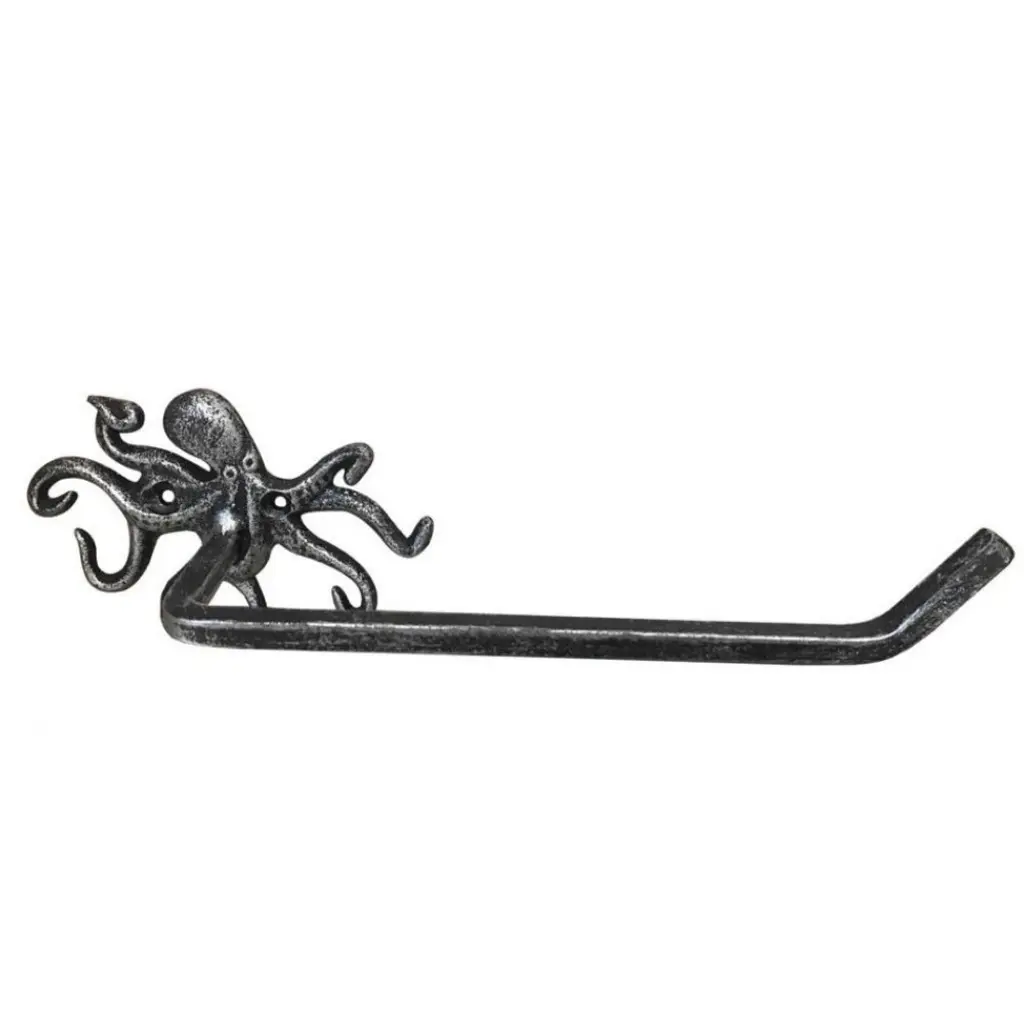 Specification:Description:This Dark Grey Cast Iron Octopus Hand Towel Holder (11") is a stylish and functional addition to any beach-inspired bathroom or kitchen. With dimensions of 1" L x 6" W x 11" H, it serves as a decorative yet practical piece for hanging hand towels. Handcrafted from solid and heavy cast iron, this towel holder exudes a unique charm, making it a perfect focal point in your space. The design features a detailed octopus, adding a nautical touch that will impress guests. Easily mountable (screws not included), it brings the sea-faring lifestyle to life while providing a sturdy solution for towel storage.