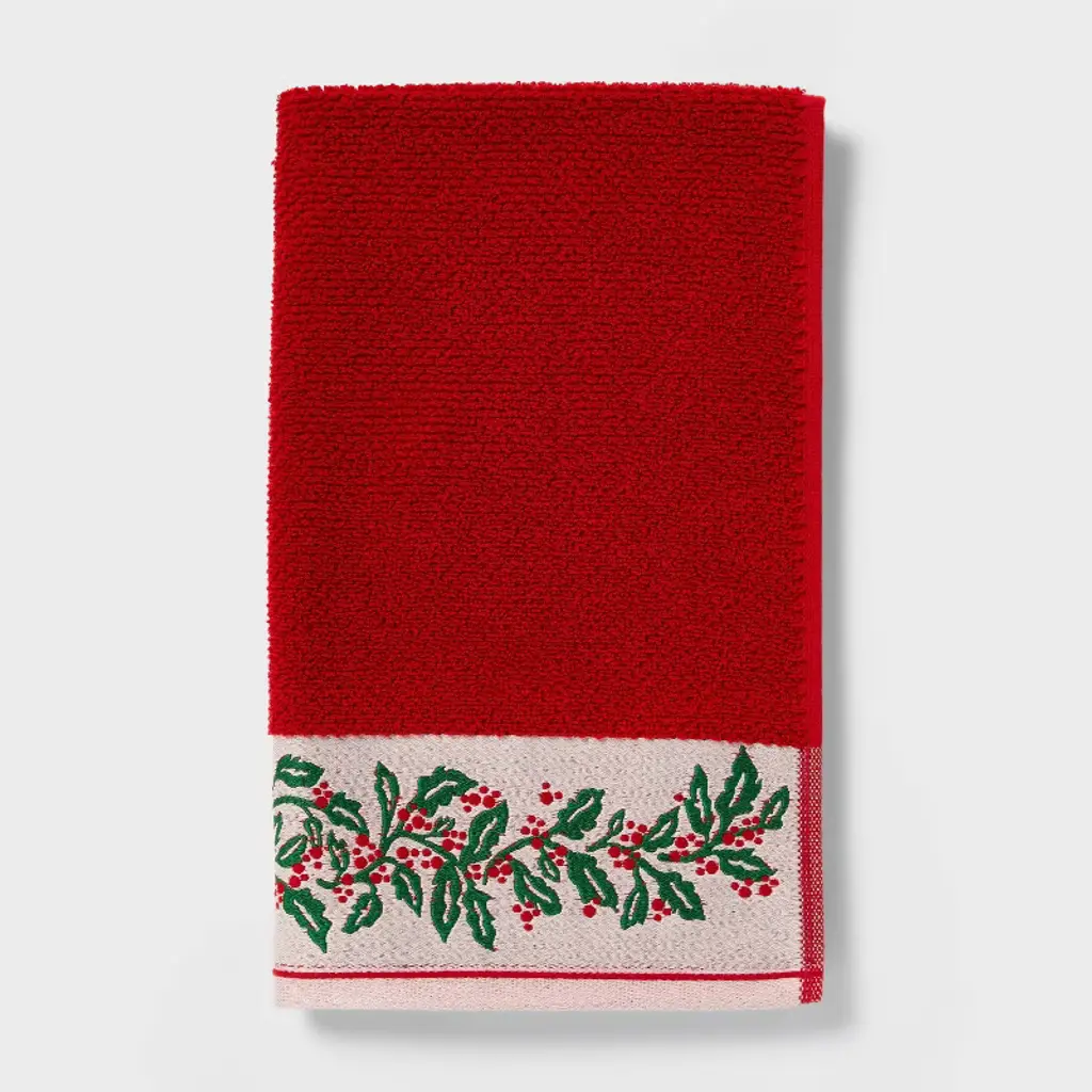 2Pk Holly Border Christmas Hand Towels Red - Threshold™