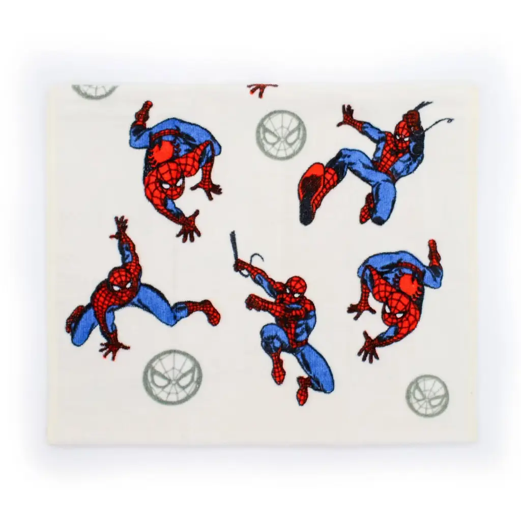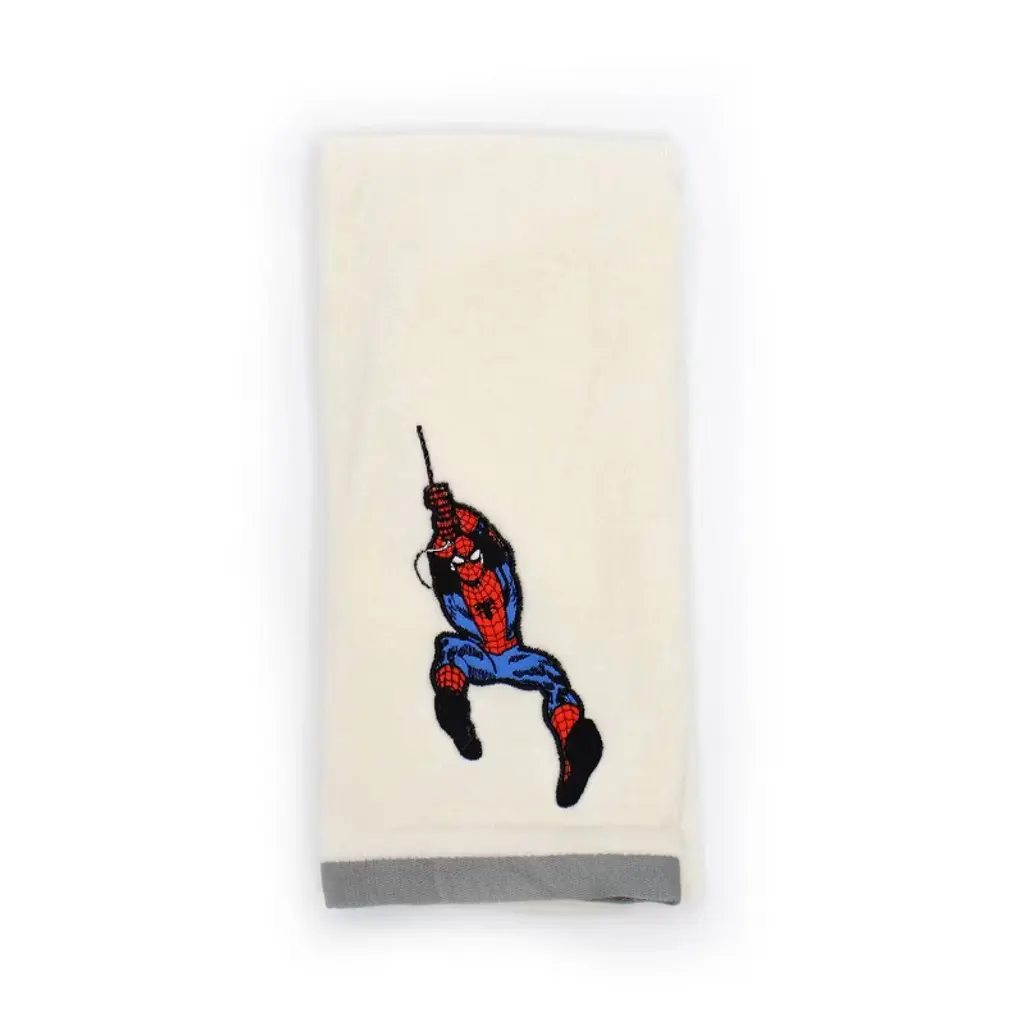 What better way to bring some fun to house than Spider-Man? Now you can jazz up the bathroom or the kitchen with everyone's favorite friendly neighborhood superhero. This 2 pack hand towel set is soft and absorbent. This item is part of a larger Spider-Man bath collection here at Target. This item consists of 100% cotton. It is machine wash cold and tumble dry low. They measure 25 inches long by 15 inches wide.