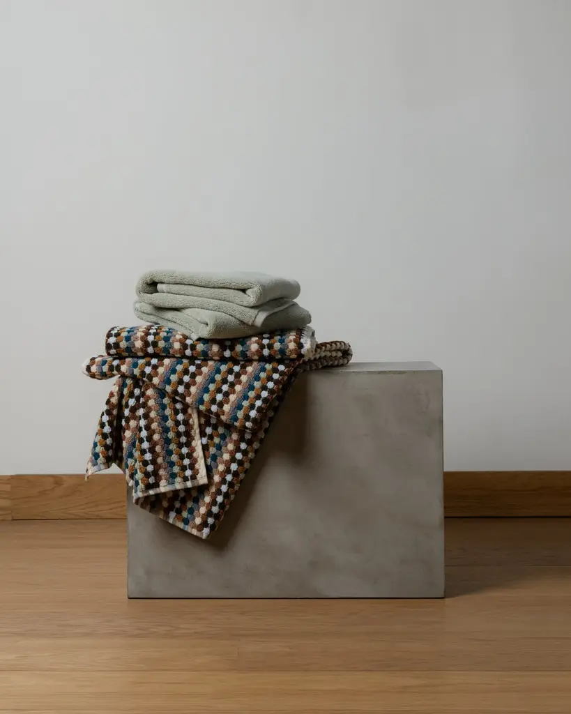 Replenish your towels with the 4 and 4, which bundles together four hand towels and four bath towels for savings and convenience. Inspired by Ojais eclectic charm, this set transforms your bath into a colorful retreat surrounded by calming green. Four Organic Mosaic Bath Towels in Multi and four Organic Plush Hand Towels in Sage create the perfect balance of design and function for a bathroom that feels as inspiring as it does relaxing.