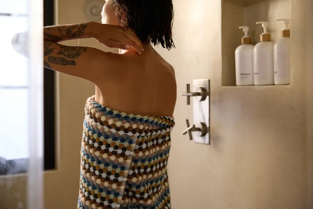 Replenish your towels with the 4 and 4, which bundles together four hand towels and four bath towels for savings and convenience. Inspired by hand-woven Turkish towels, our Organic Cotton Mosaic Collection is fashion-forward with a retro vibe. Made from organic cotton, its gentle-yet-durable weave features a stunning jacquard pattern. Mix and match with our existing towel assortment, or style solo in a statementbath.