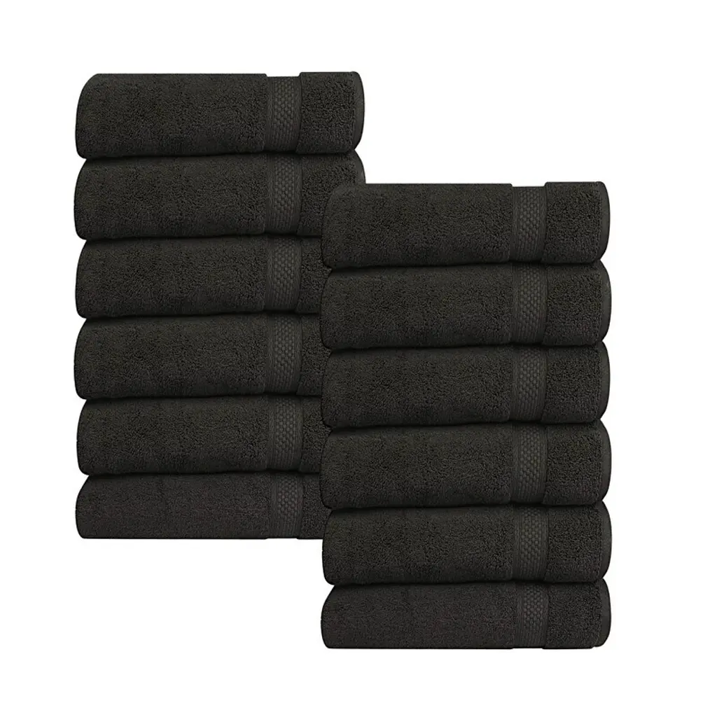 A1hc Hand Towel 6 Piece Set, 500 Gsm Duet Technology 100% Ring Spun Cotton, Ultra Soft, Quick Dry, (16"x28") - Black Onyx