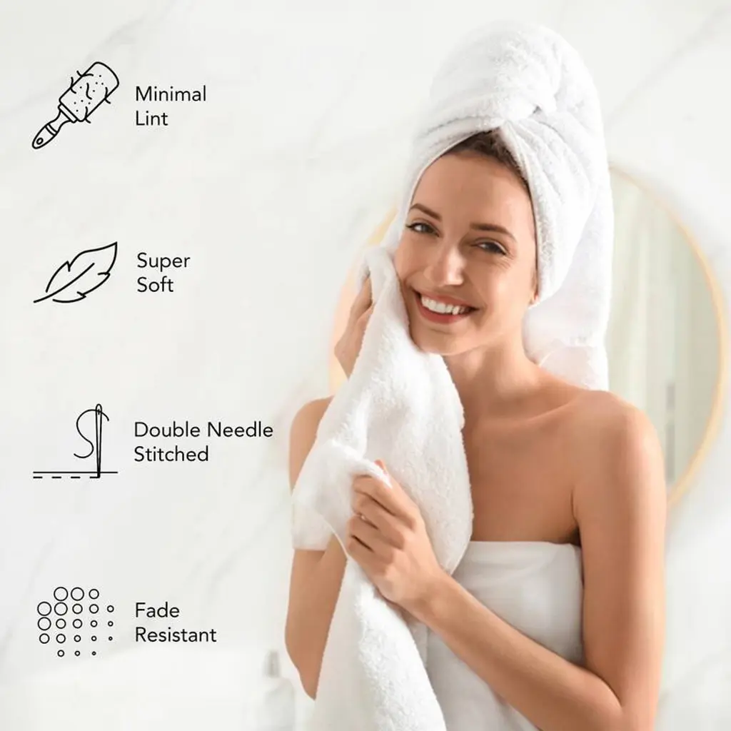 A1HC towels are highly absorbent, lightweight, fluffy, and soft, perfect for wrapping yourself in after a warm shower. Our luxury Bath towels, available in a variety of colours and sizes, make it easy for you to choose your favourite shade. Elevate the comfort and vibrancy of your home by placing these Cotton Bath towels in your bathroom. Crafted from 100% ring spun cotton and utilizing 500 GSM duet technology, these towels are not only highly absorbent but also maintain their softness even after numerous washes. Designed to meet your family's daily needs, our towels offer exceptional coverage for a truly luxurious and relaxing experience.