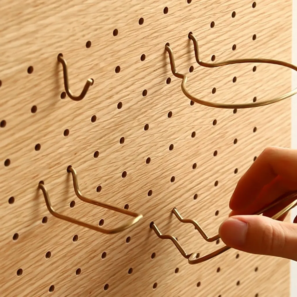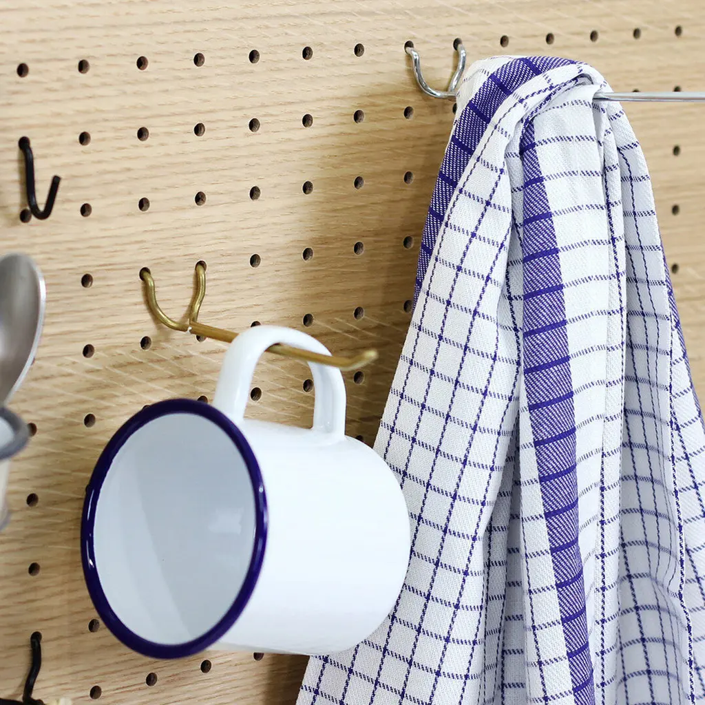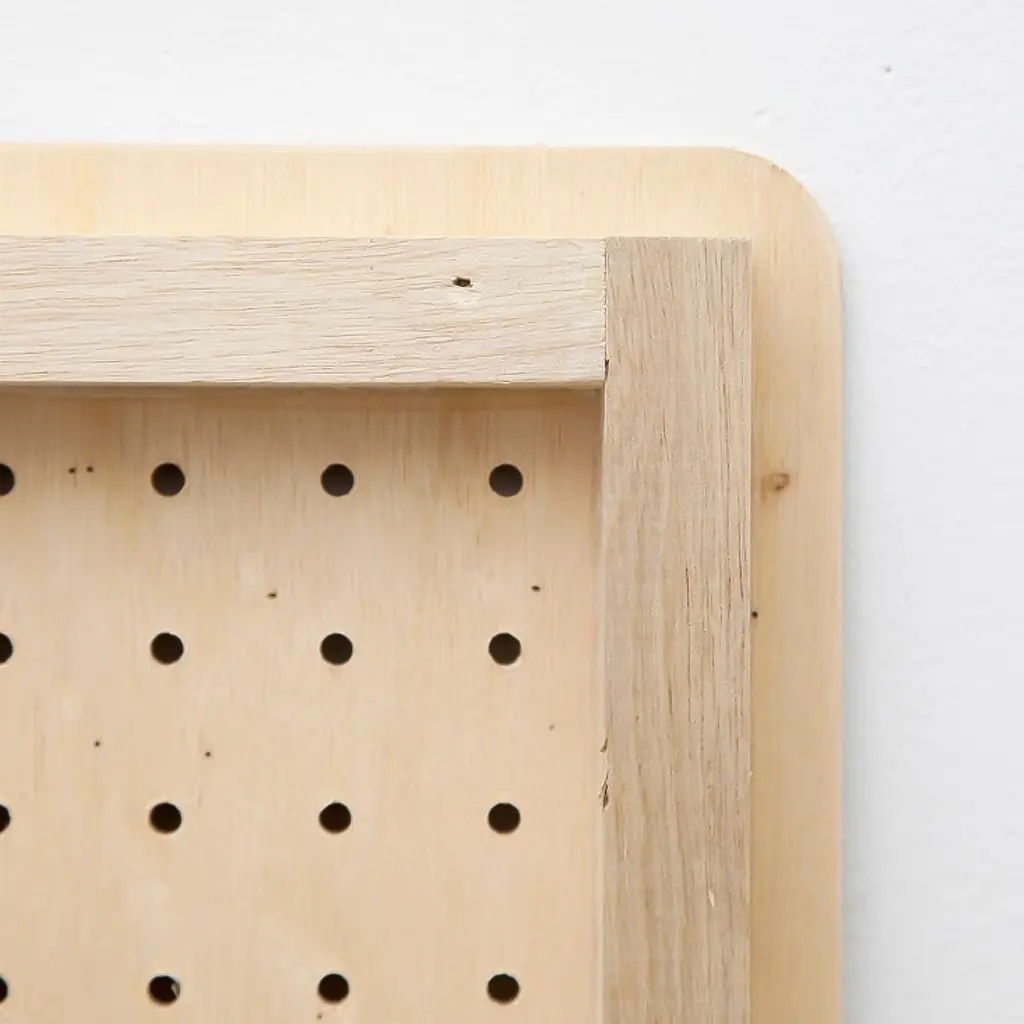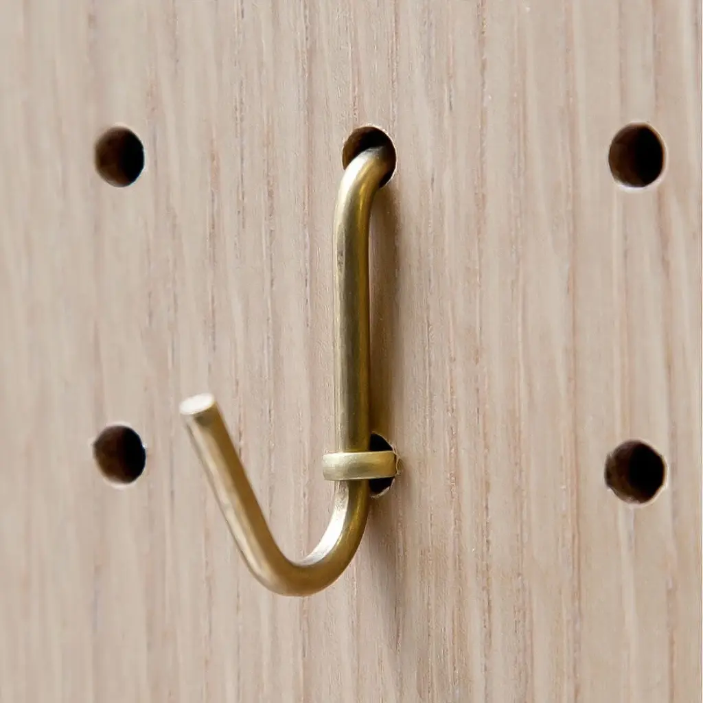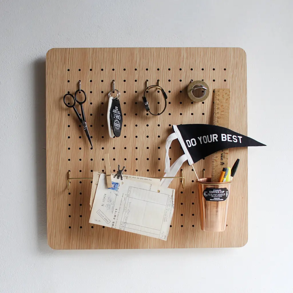 The classic pegboard, reimagined as a fun, easily customizable storage solution. Meet the Amabro Peg Wall – Oak, the perfect way to organize and display items while keeping them accessible. The small, medium and large sizes each offer practical answers to de-clutter your home. While the small pegboard has a square shape, the medium and large boards can be installed either vertically or horizontally. All three come with a range of handy accessories that transform the Amabro Peg Wall into a multi-functional design. The tray can hold small bottles, eyewear, or cups; the bar can be used for hand towels or scarves; and the hooks and loop can hold a variety of objects. Crafted from oak plywood, this customizable pegboard features a light color with subtle textures. The Amabro Peg Wall also comes in a darker walnut version.