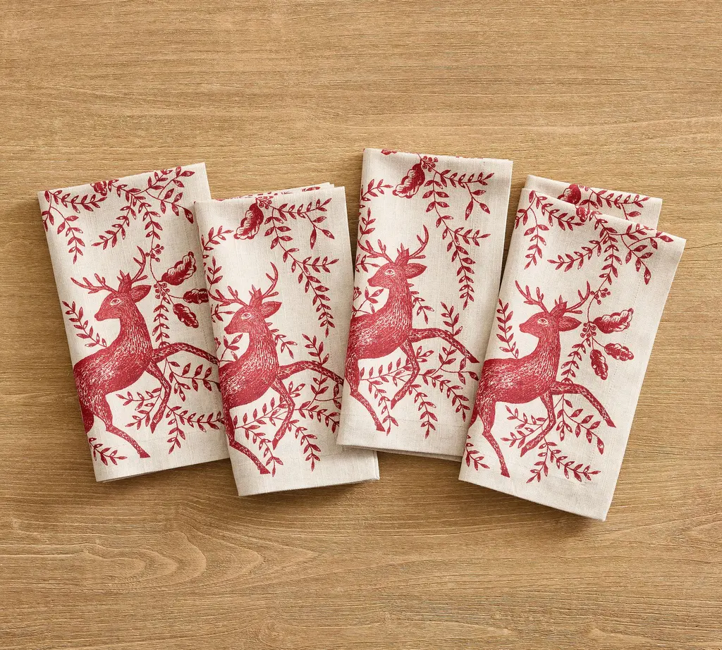 Dress up the kitchen or bath with this beautiful 100% European linen towel. Embroidered with an Antler design, this towel adds beauty to any part of your home. Tab on back for hanging. Machine wash and iron flat for a crisp look.
