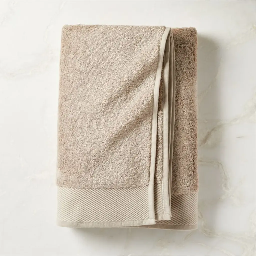 Impressively soft, extremely absorbent hand towel is as durable as it is beautiful. Spun from a blend of organic cotton and certified TENCEL modal, hand towel evokes serenity in light taupe. CB2 exclusive.