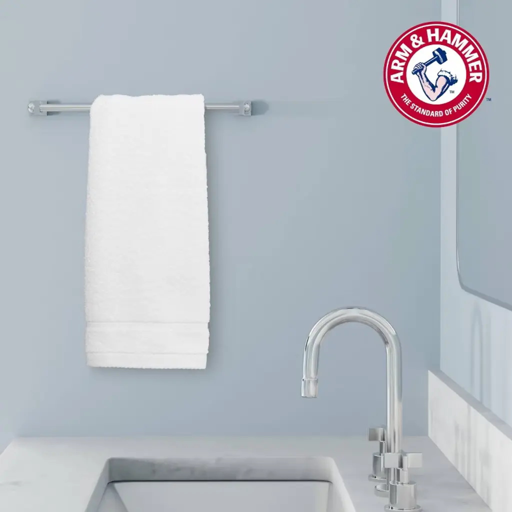 Experience the gentle luxury of towels designed especially for sensitive skin. Crafted from a unique blend of soft cotton and rayon from bamboo, these advanced towels offer enduring softness without harmful irritants. Lower-lint and effortlessly machine washable, they maintain their pristine appearance over time. With antimicrobial protection, these Arm & Hammer™ towels stay fresher for longer, effectively resisting mildew odors. Elevate your self-care routine with towels specifically made for the comfort of sensitive skin.